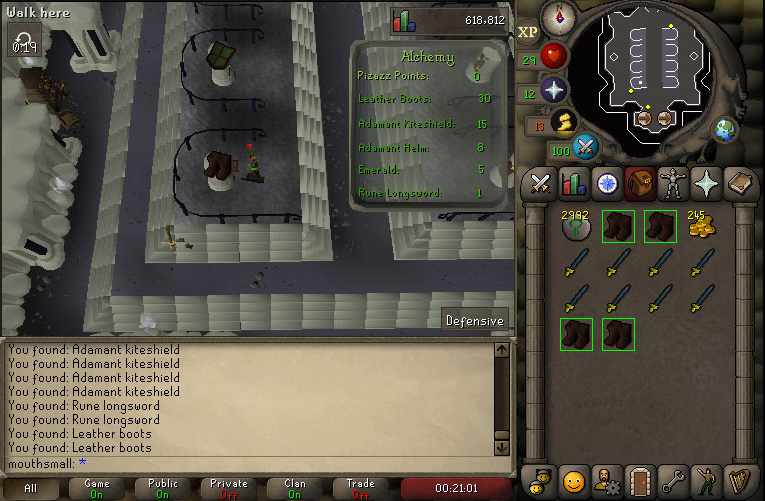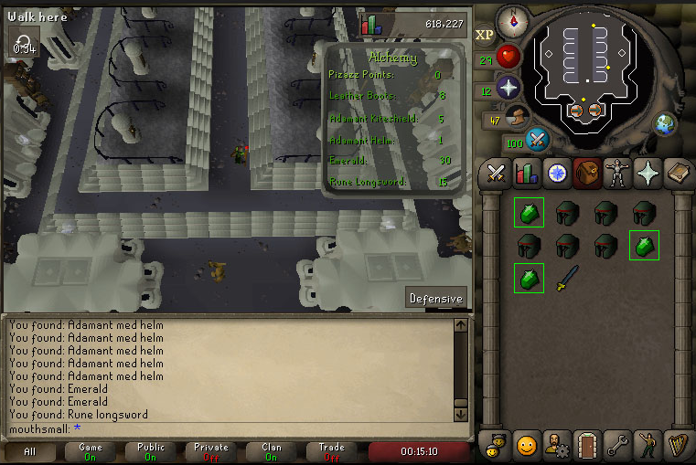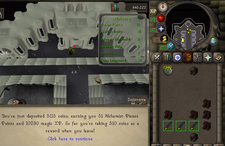 El minigame de alquimia consiste en tomar items de las cúpulas y lanzar el hechizo. El hechizo convierte el item en otro y ese oro lo depositas...