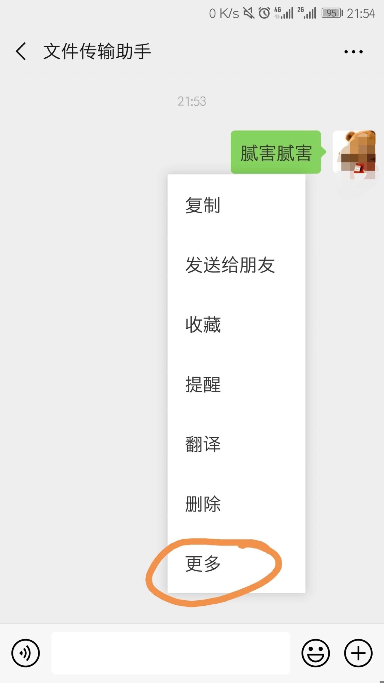在需要收藏的消息上面,点右键选择“更多”。