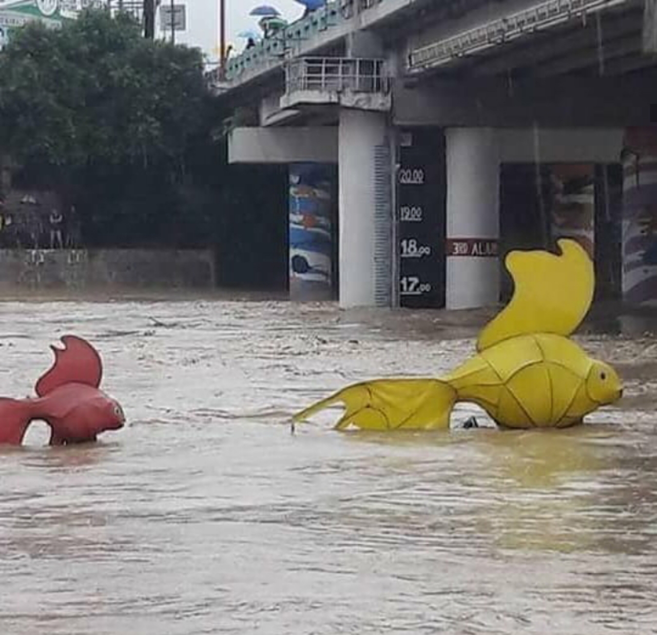 As you see in the pictures how the streets are in underwater Bridges and everywhere only water found after Typhoon destruction.