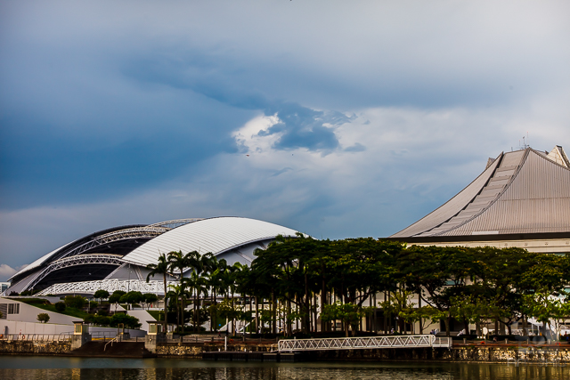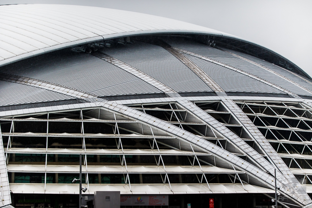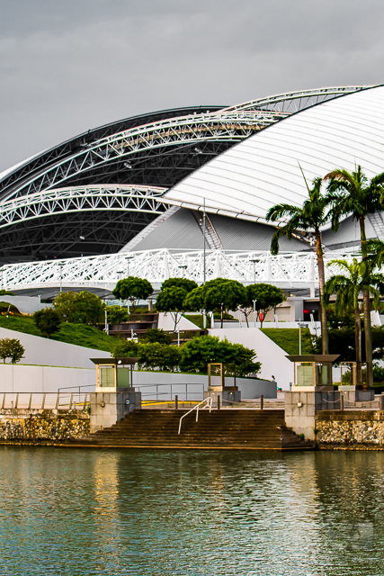 In contrast to the National Stadium, is the much older Indoor Stadium, which is just next door. Instead of a rounded mound look, it sports an angular circus tent look and reminds me of the Millenium Falcon from Star Wars. Both stadiums are within the same complex called the "Sports Hub" which also has an indoor pool as well as a shopping mall. The Indoor Stadium is where a lot of the music concerts, MMA events and basketball games are played.