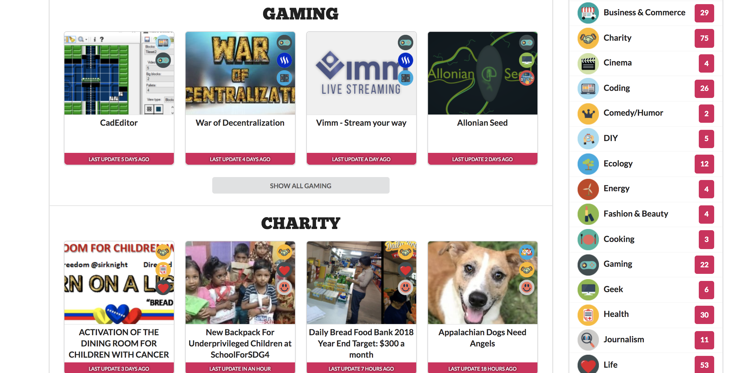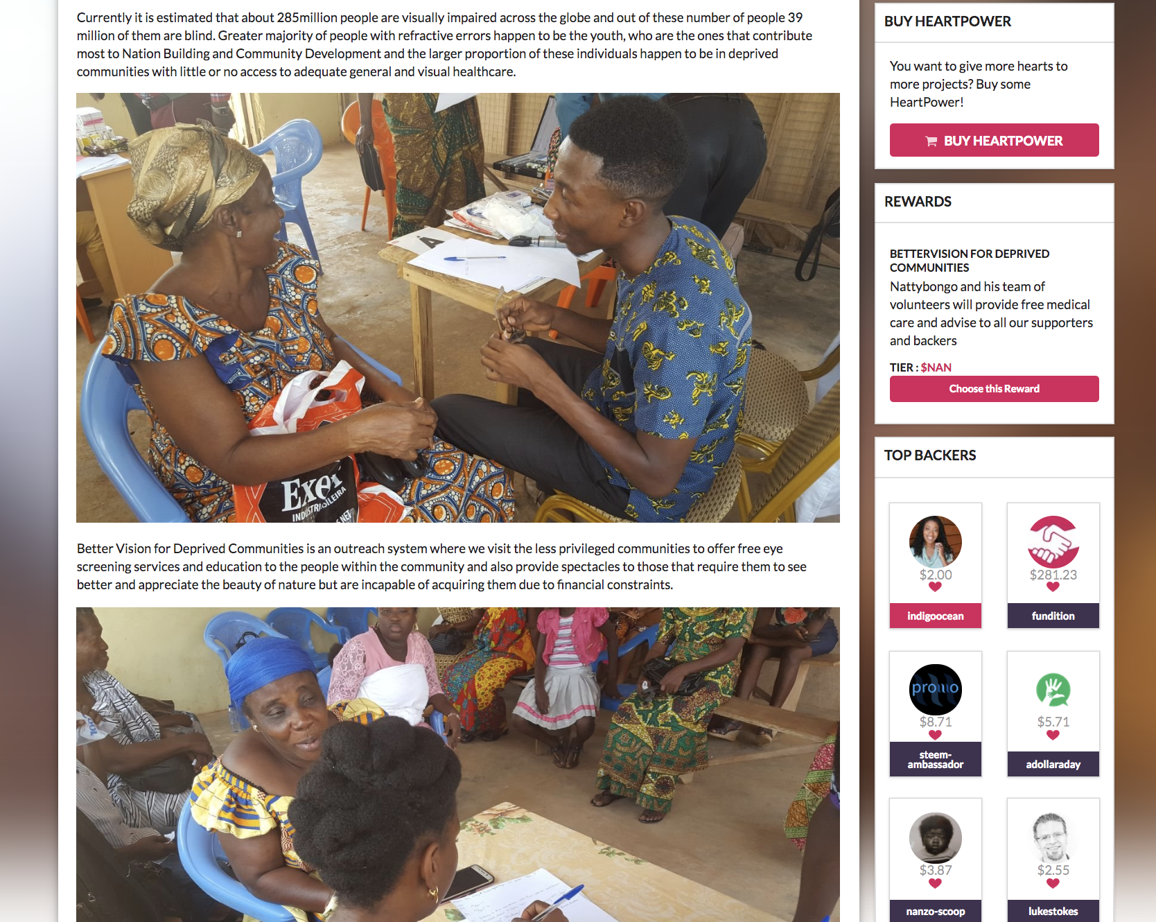 每個項目都有詳細的描述,和被記錄在STEEM區塊鏈上,用戶能輕易查看項目需要的資金和目前的進度,以慈善項目為例,支持者能輕易幫助到不同國家有需要的人。