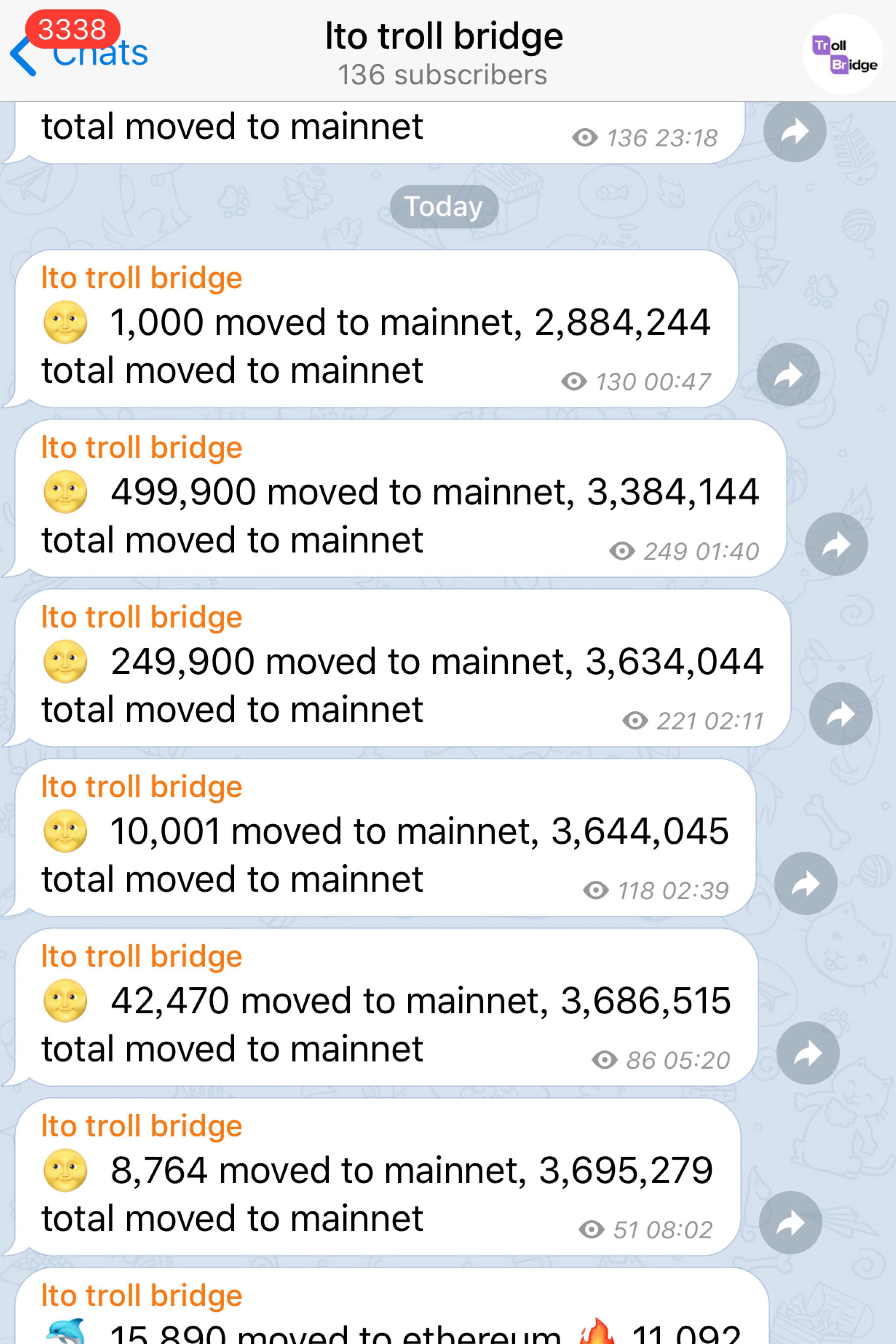 佢仲有一個自創的Troll Bridge System黎保障散戶投資者,用戶可以用Trol Bridge自行係Mainnet Tokens同erc20 tokens之間自由兌換,而只有erc20 tokens可以係交易所俾人買賣,所以市場上既流通量會非常少。大家仲可以隨時透過以下條Link check到有幾多Tokens係Troll Bridge上轉換: