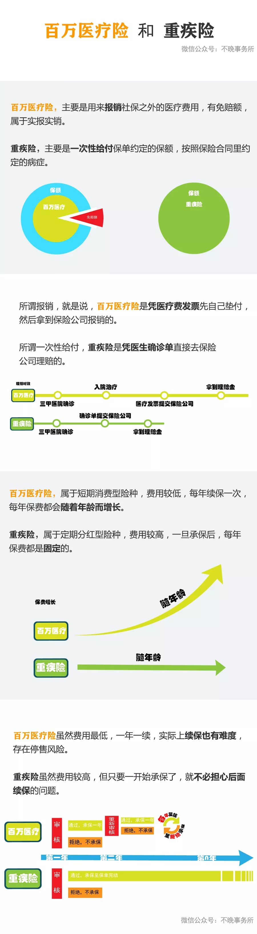 百万医疗险,便宜,不限疾病意外,实报实销。但续保有难度。如果买不到,可以尝试用防癌医疗险代替。