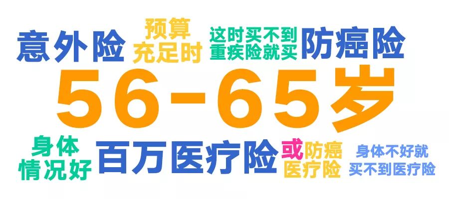 重疾险,贵,保障全,额度大,一次性给钱,但对年龄限制很严,大多数55岁以上就买不到了,或者不划算。如果买不到可以用专门的防癌险代替。