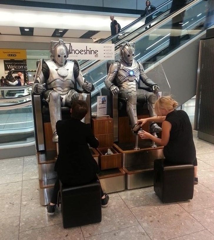 - Daha önce ayaklarına bakım yapılan robotlar gördünüz mü? Ben ilk defa görüyorum.