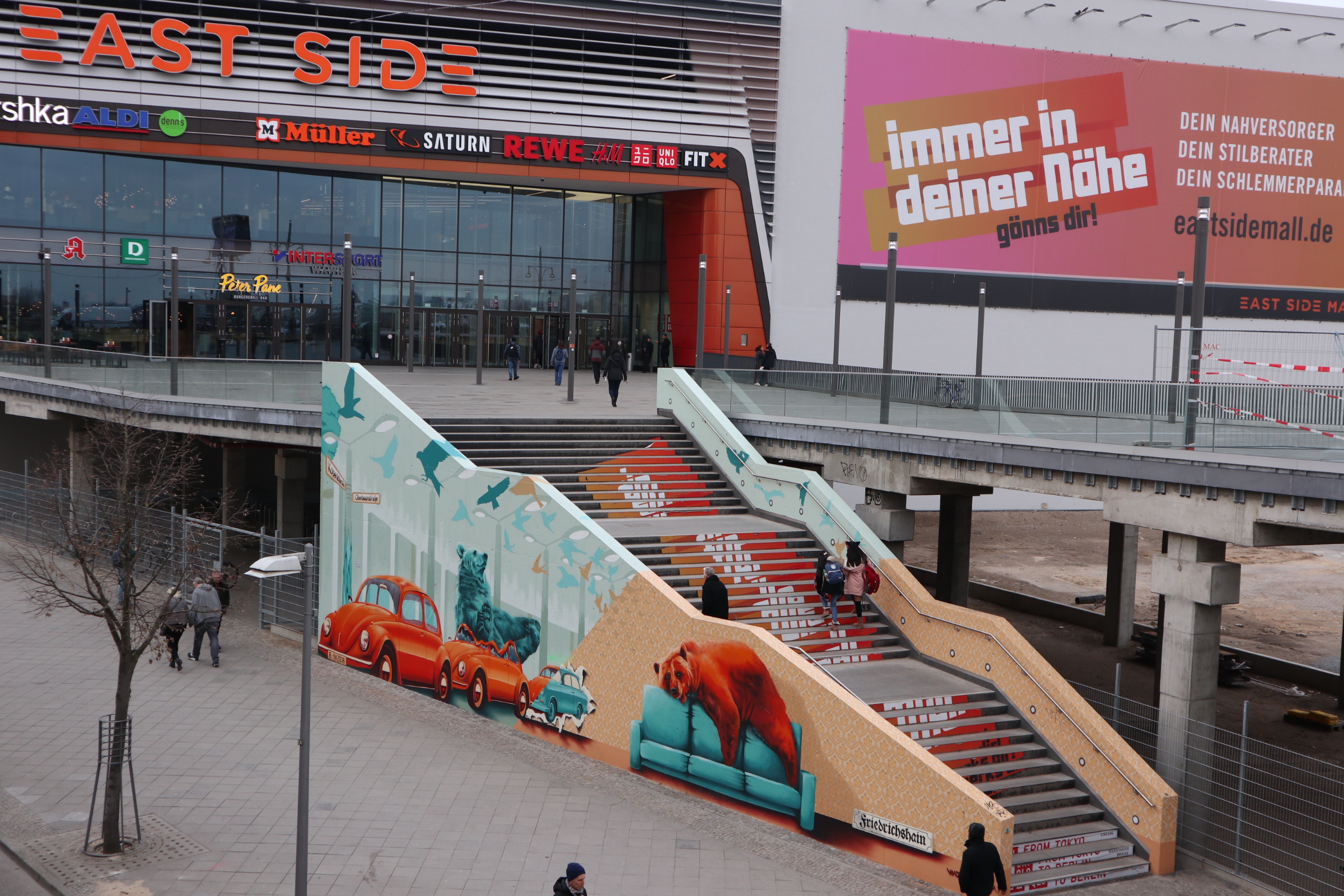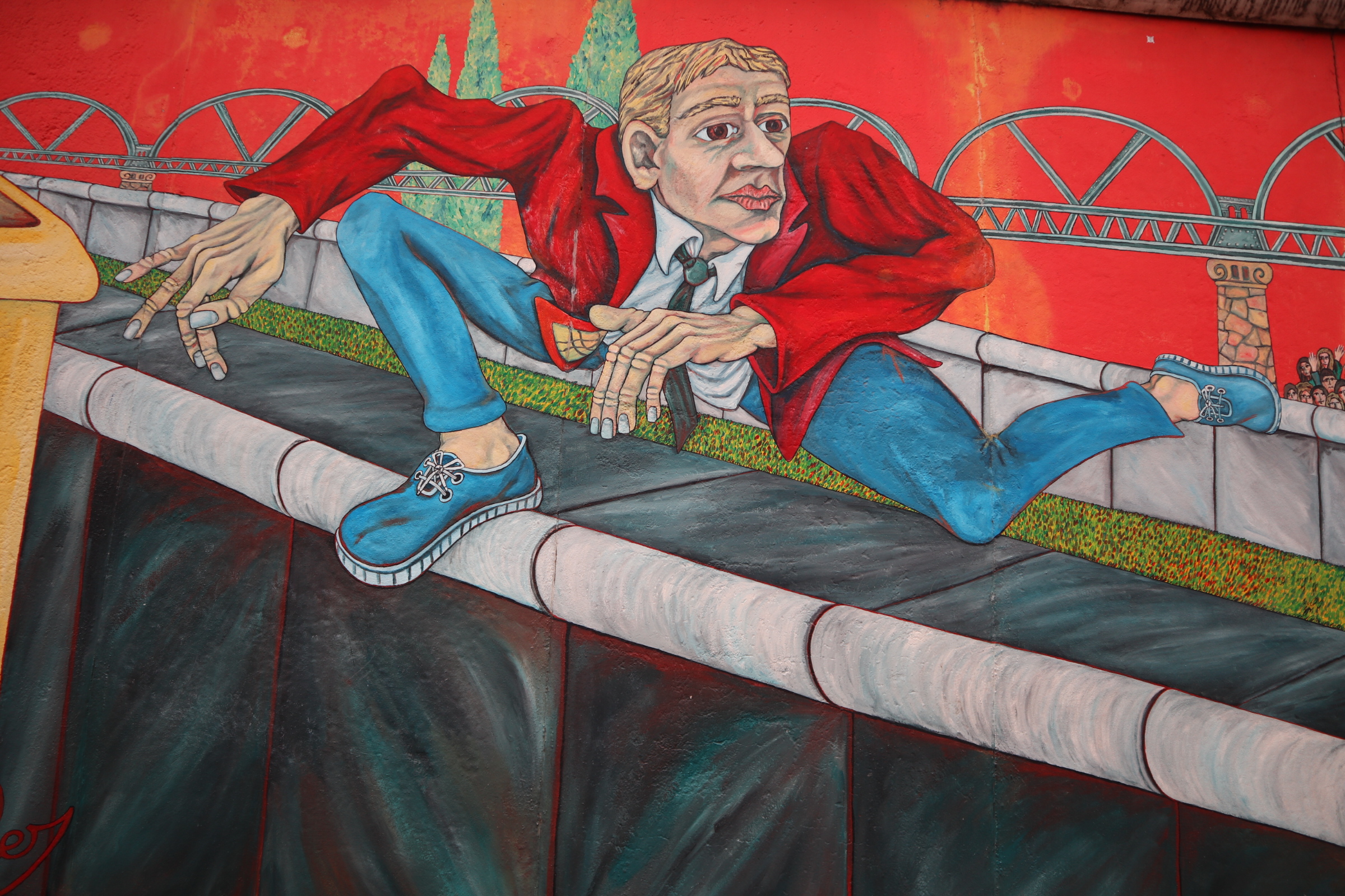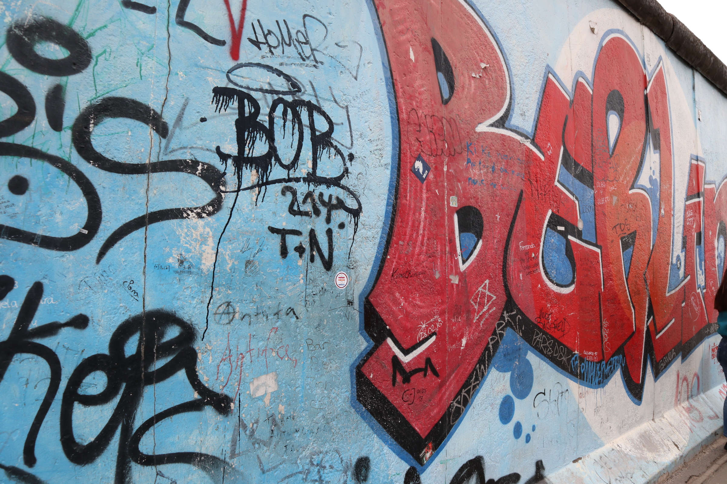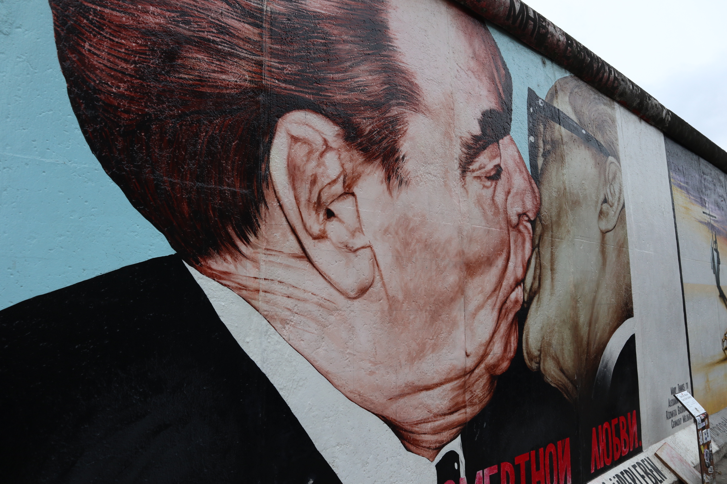East West Side gallery is the longest piece left of the Berliner Mauer. For those who need a reminder of the Berliner Mauer: it was a barrier that divided Berlin (East side and West side) from 1961 to 1989.