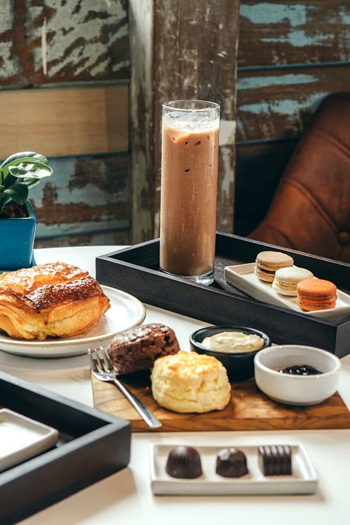 Back at the café, we decided to have a chocolate version of high tea. We turned to the hot milk chocolate and iced pure dark. For the chocolate drinks, they use their own chocolate ganache, which they mix with milk. The iced pure dark isn’t just for chocolate lovers but also for those who like coffee or refreshing drinks. It is not too sweet, it is rich in flavor and it is actually surprisingly refreshing. Bangkok is extremely hot and this drink is spot on for that climate. Vivi likes hot beverages more, so she gave a chance to hot chocolate milk, presented with beautiful latte art on top. Her drink was very tasty with tart notes and rich sweetness. There was also some nutty flavor mixed with berries in a creamy texture. Heaven. What we liked the most was that the chocolate drinks weren't too heavy and we felt great after consuming them. We wouldn’t even mind having seconds.