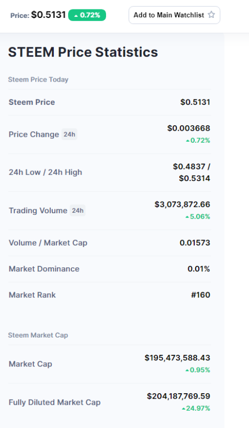 STEEM Price Statistics 5/30/2021