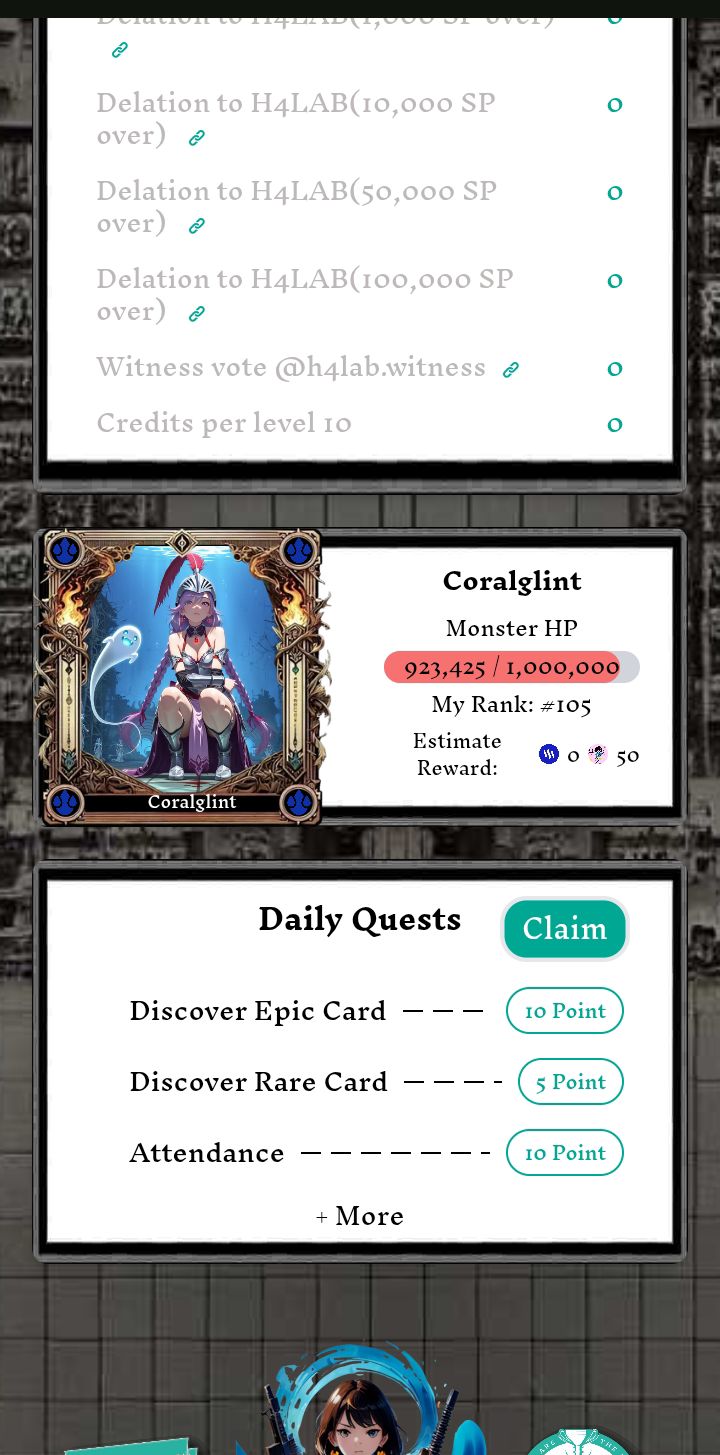 There's a Leaderboard but I'm new and haven't played enough so I'm so low on it I can't even find myself on the board. However when I checked my profile they said I was ranked #82 position and I have an estimated reward of 0 Steem but 50 Hari Points which will add up.