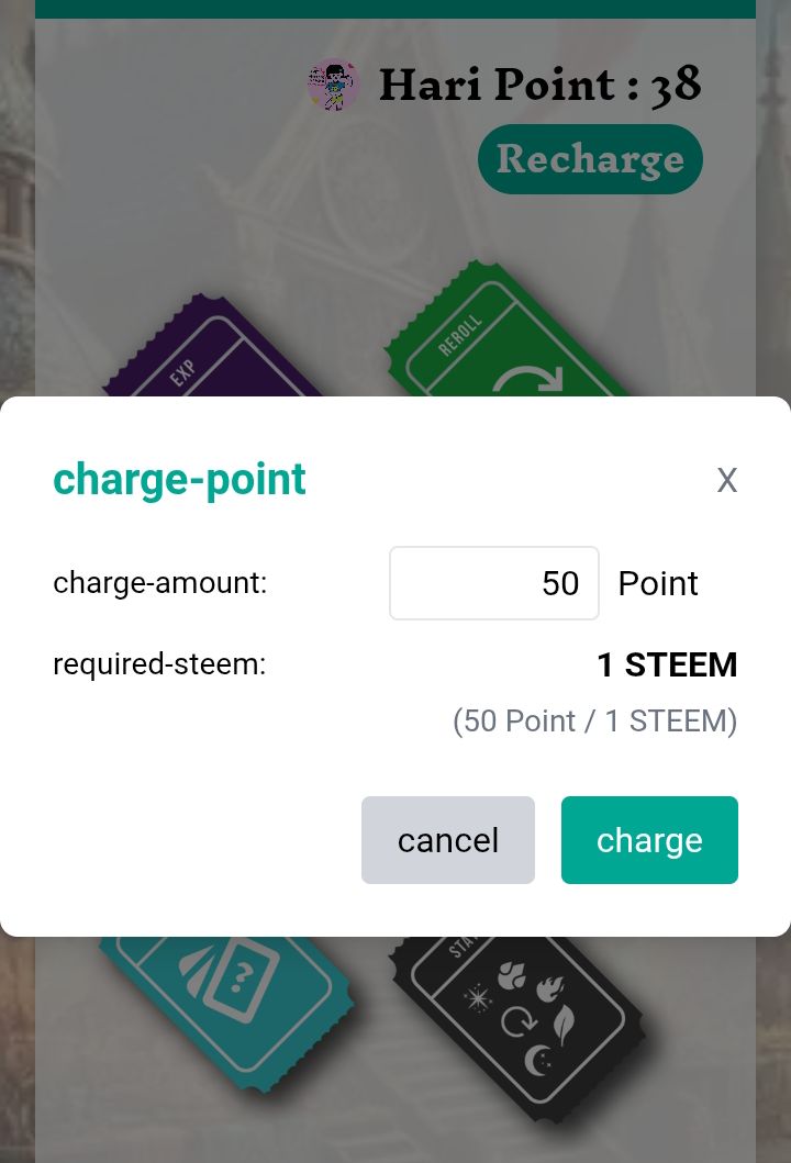 Also for using EXP Ticket I claimed 10 more points. My total Hari points at the time was 38 which was not enough to play again so the only option I had was to actually buy some points.