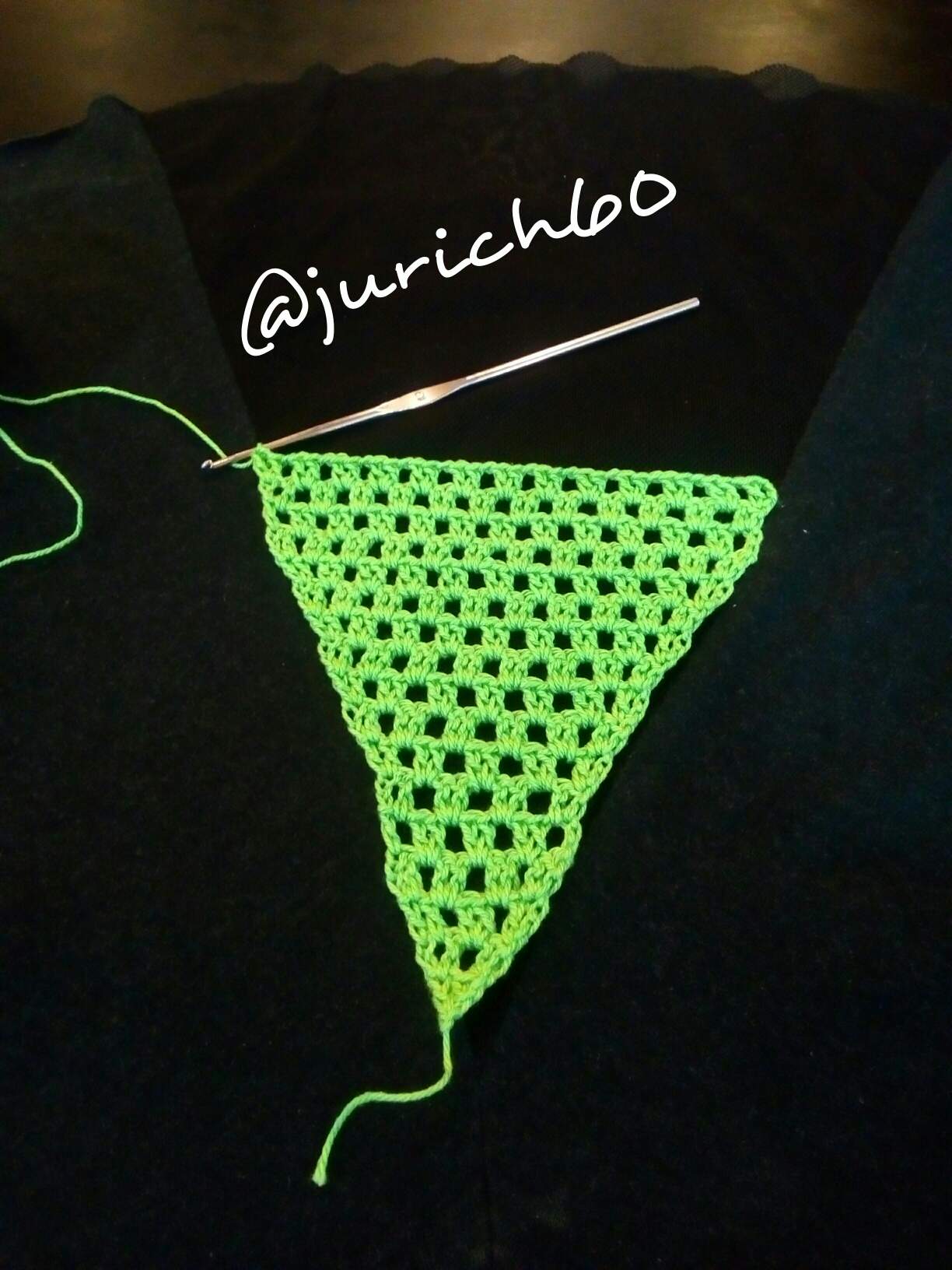 For weeks I searched for a triangle pattern from my cellphone gallery, Pinterest, YouTube, Crochet group post, Free pattern sites...oh oh, I haven't chose one, so, I came up with my simple triangle to follow the shape of my skirt...