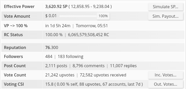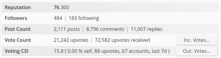 When it comes to supporting users, selecting high-quality content from within and outside the community to upvote is an excellent way to demonstrate how much you value their contributions. It also reflects my level of activity on this platform. Currently, my voting CSI is 15.8. I try to curate as many posts as possible. I will do my best to increase my voting CSI by engaging in more posts.