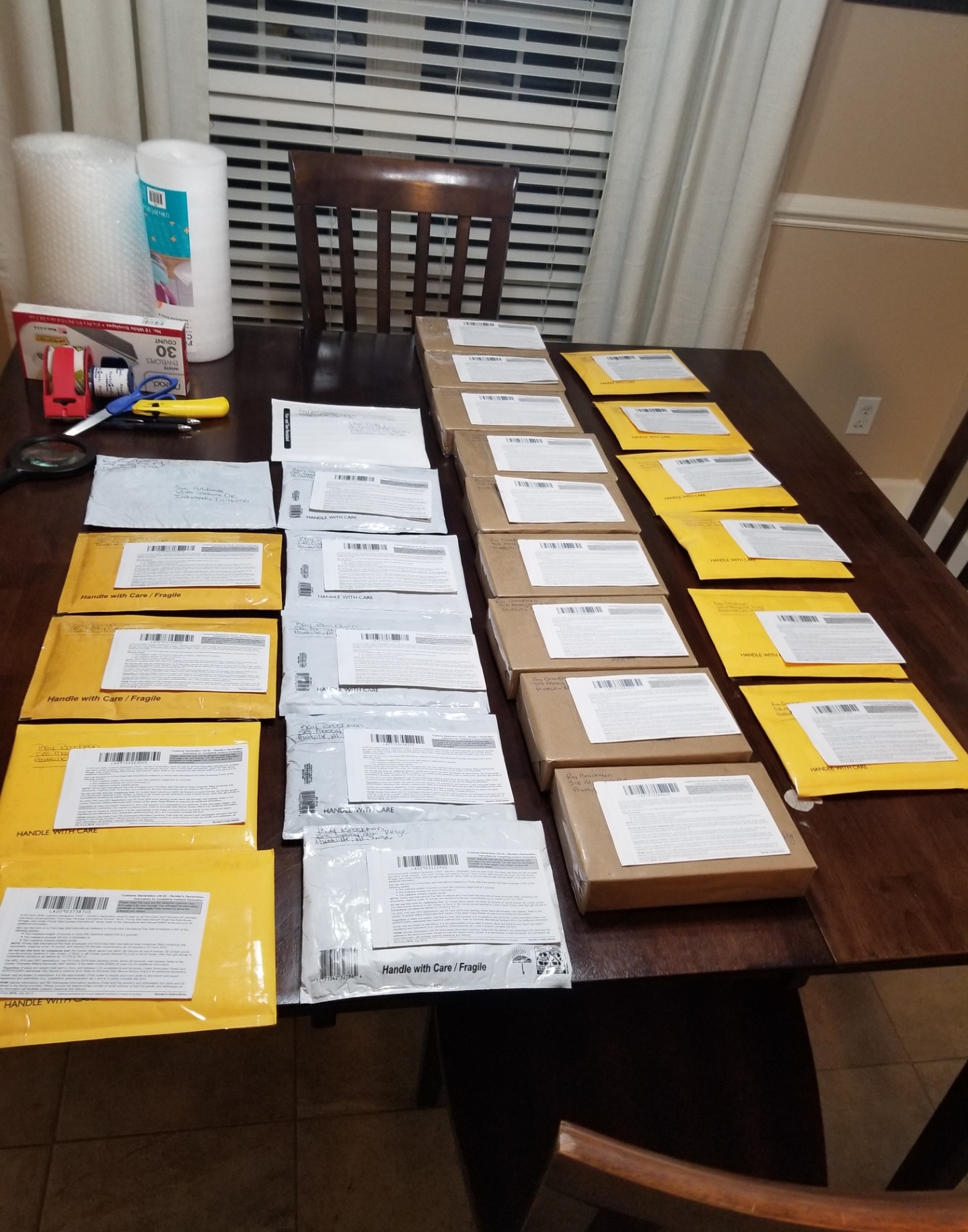 Alright, so the one thing that I didn't plan was getting these rounds so late in the year. This has been rough, tough and enjoyable. Being in retail this is a bad time to be going to the post office with 28 international packages. To say the least it took a little time to get these babies mailed today.