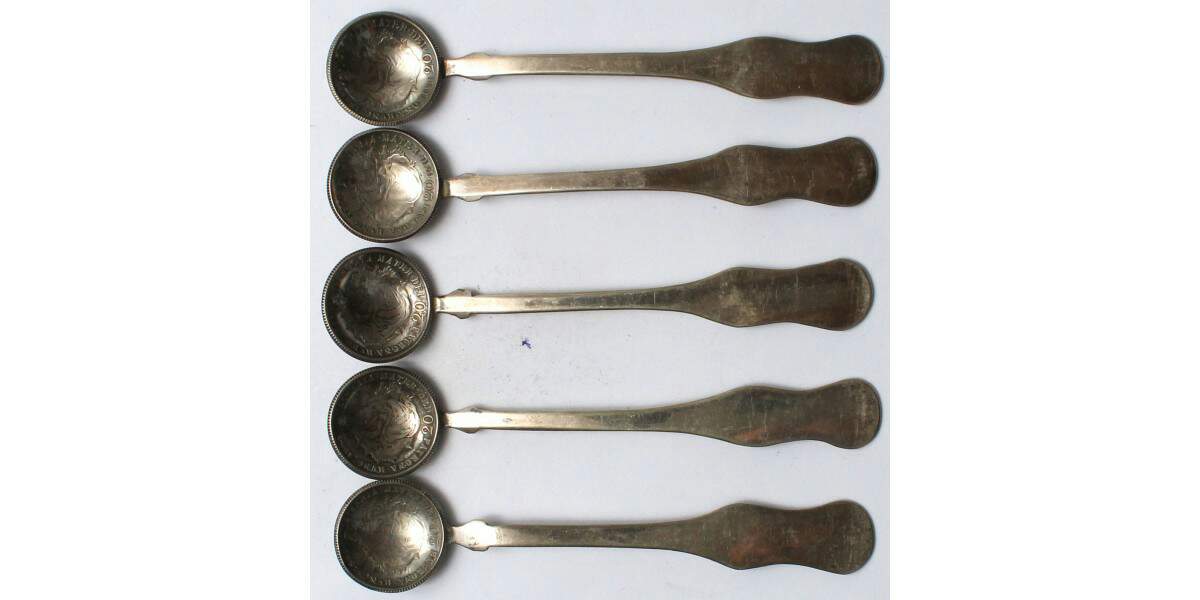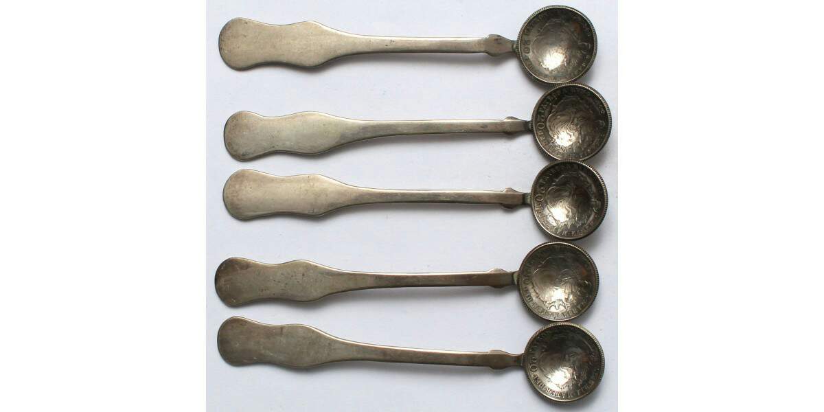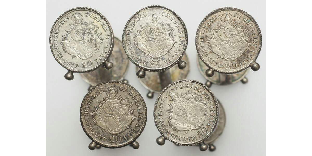 And finally this silver set of five little spoons made of 20 krajcár in 1840, 1845 and 1848.