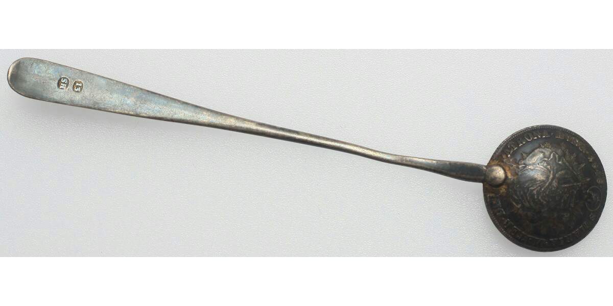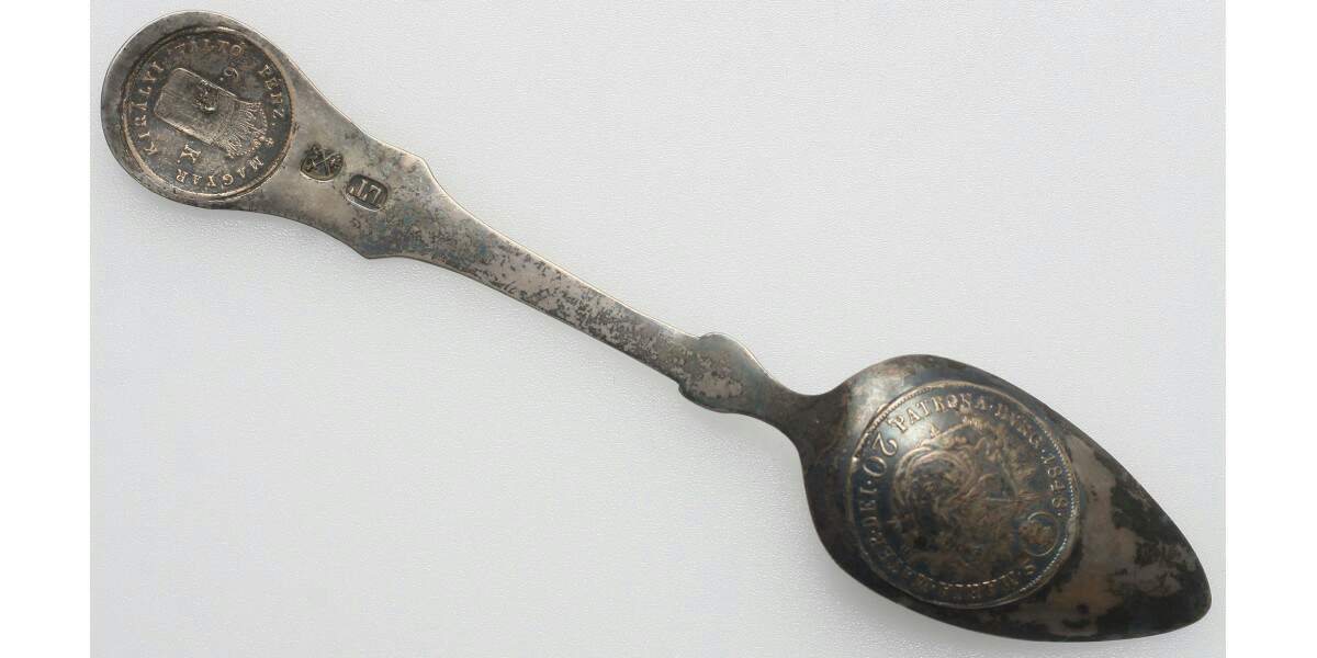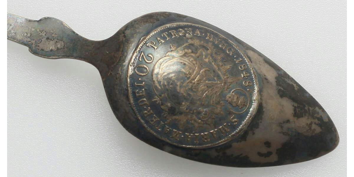 This teaspoon was made of a 20 krajcár from 1848 and from a 6 krajcár in 1849.