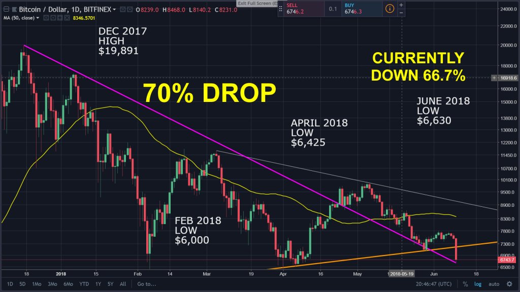 Keep one very important thing in mind: Since Feb. 2018, we are seeing HIGHER LOWS in the BTC price - and that's a very encouraging sign. We had lows of $6,000, then $6,425, and today we're at $6,630 - but it could close lower. I think this could appear to be a FALSE BREAKOUT to the upside. Volatility will shake out a bunch of tokens from the weak hands, trigger the selling by bots and trading programs, and create an environment of "ON SALE NOW!!" where big money will come in and snap up all of the tokens at a greatly reduced rate. Don't behave like a weak hand - HODL. SELL HIGH. Do not sell low - or you'll just make yourself a loser.
