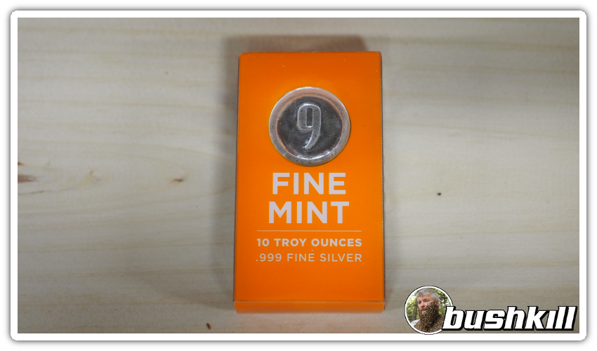 I'm a stacker that focuses mainly on the bullion aspect of silver and not much into paying premiums for collector items. So recently APMEX had a mobile only sale on their new 9Fine Mint cast silver bars for $.59/ounce over spot. Although I'm not a heavy mobile user, this was my kind of deal so I fought my way through ordering with my phone. I have to admit, it went rather smoothly, even for a guy that had his mind set it would be a pain. I ordered a 10 ounce bar and it arrived yesterday.