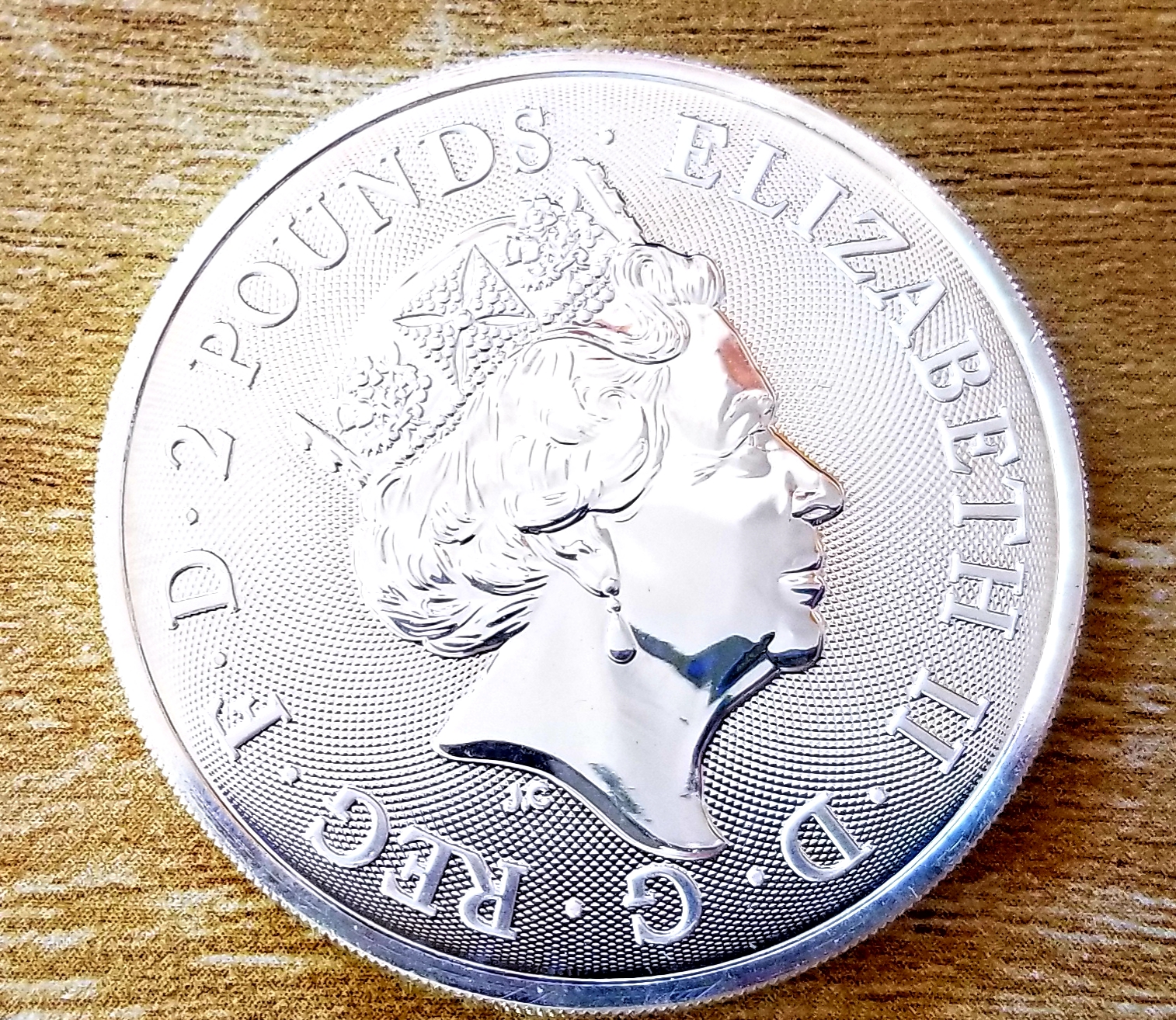 The other side of the coin, the Queen and 2 pounds legal tender