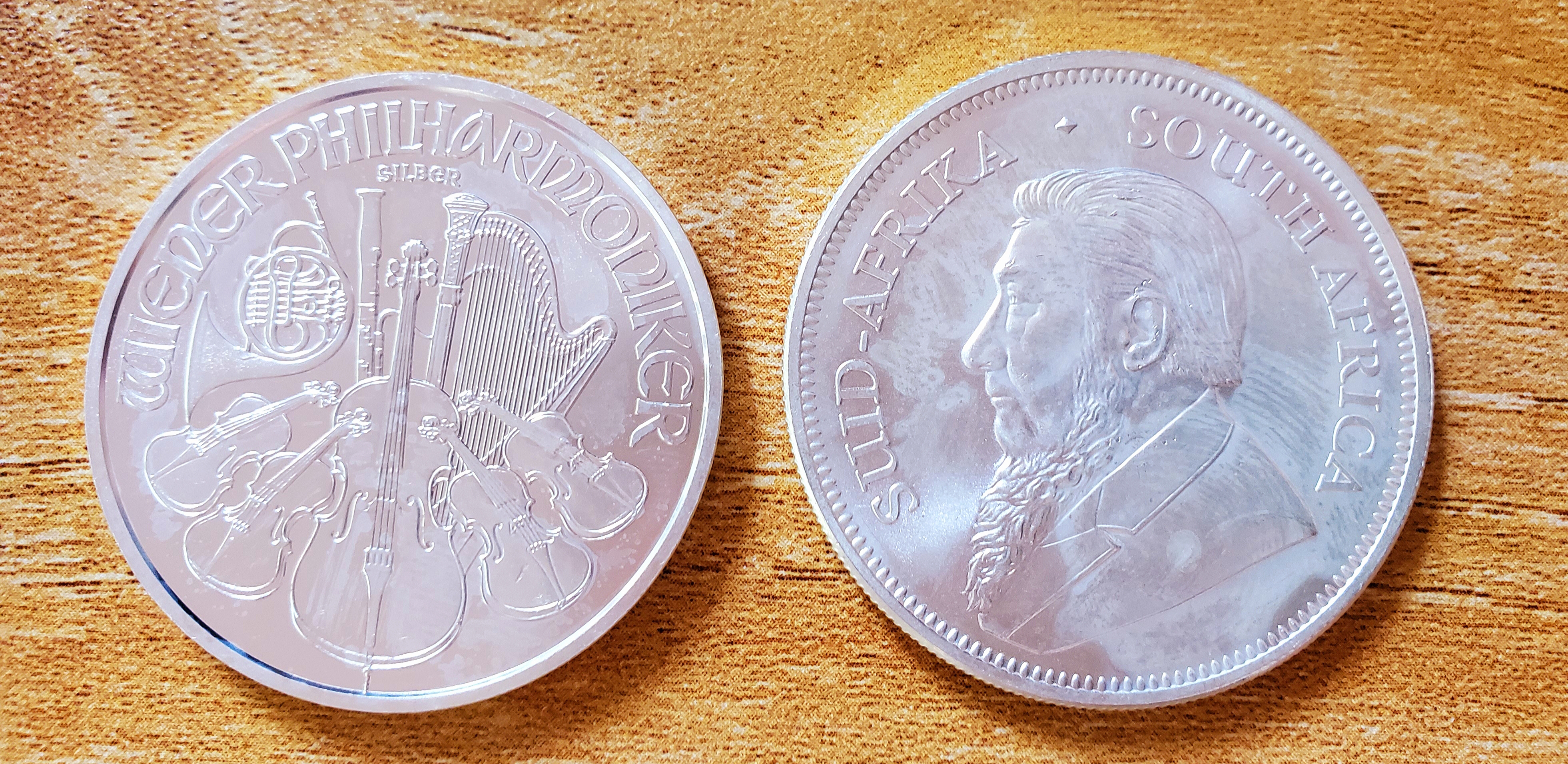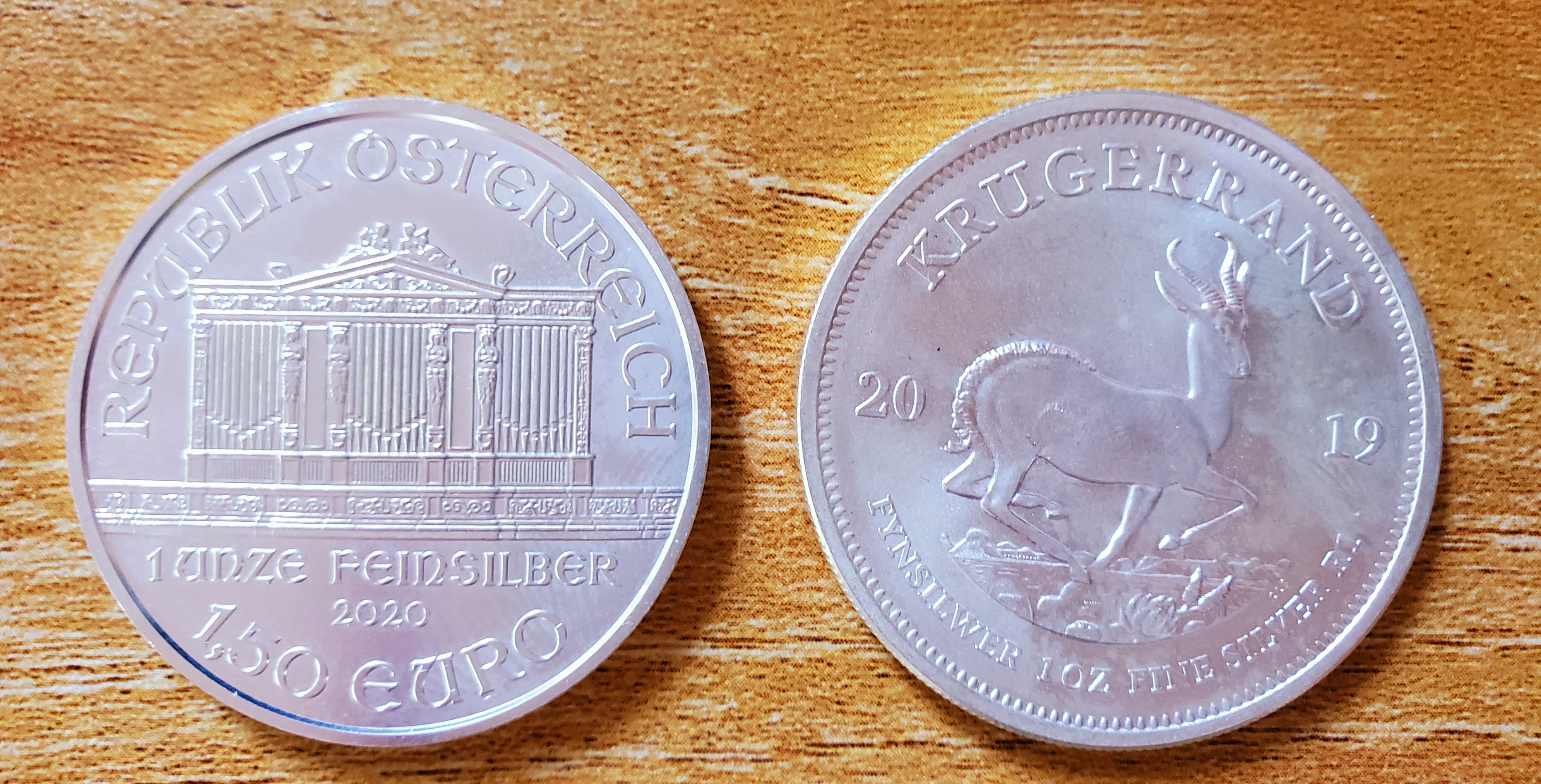 These are the 2020 Austrian Philharmonics silver coin and the 2019 South African Krugerrand. I actually ordered 2 Philharmonics but the dealer ran out and swapped it with Krugerrand. The design doesn't change every year. I prefer new design every year makes it more fun to collect