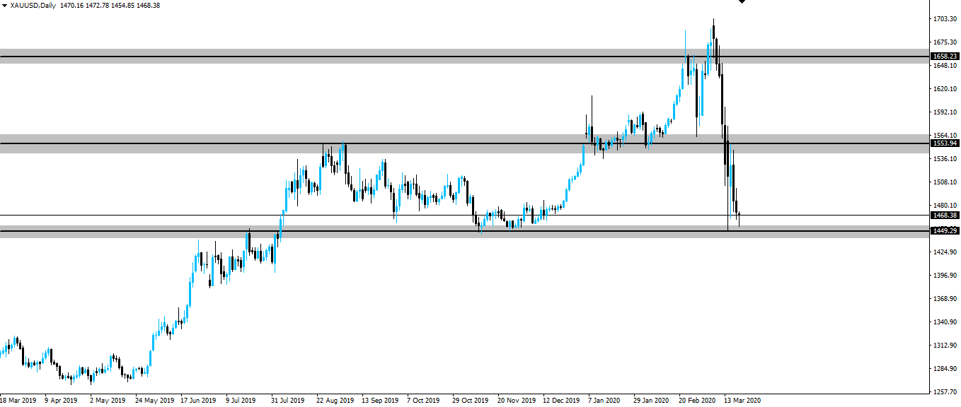 With stock markets taking a massive hit globally, it seems traders are continuing to sell liquid assets such as Gold, to fund larger leveraged losses elsewhere.