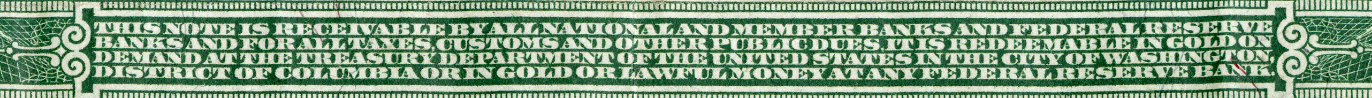 THIS NOTE IS LEGAL TENDER FOR ALL DEBTS, PUBLIC AND PRIVATE AND IS REDEEMABLE IN LAWFUL MONEY AT THE UNITED STATES TREASURY OR AT ANY FEDERAL RESERVE BANK