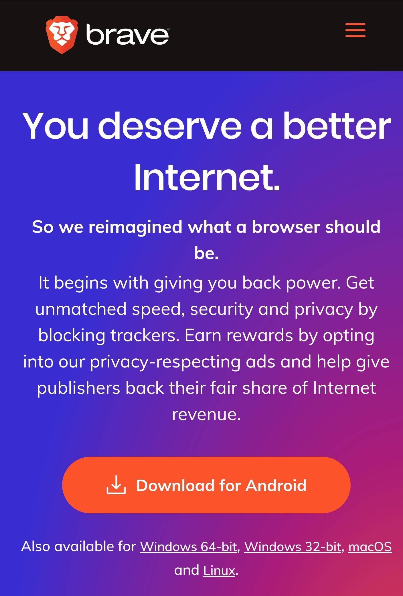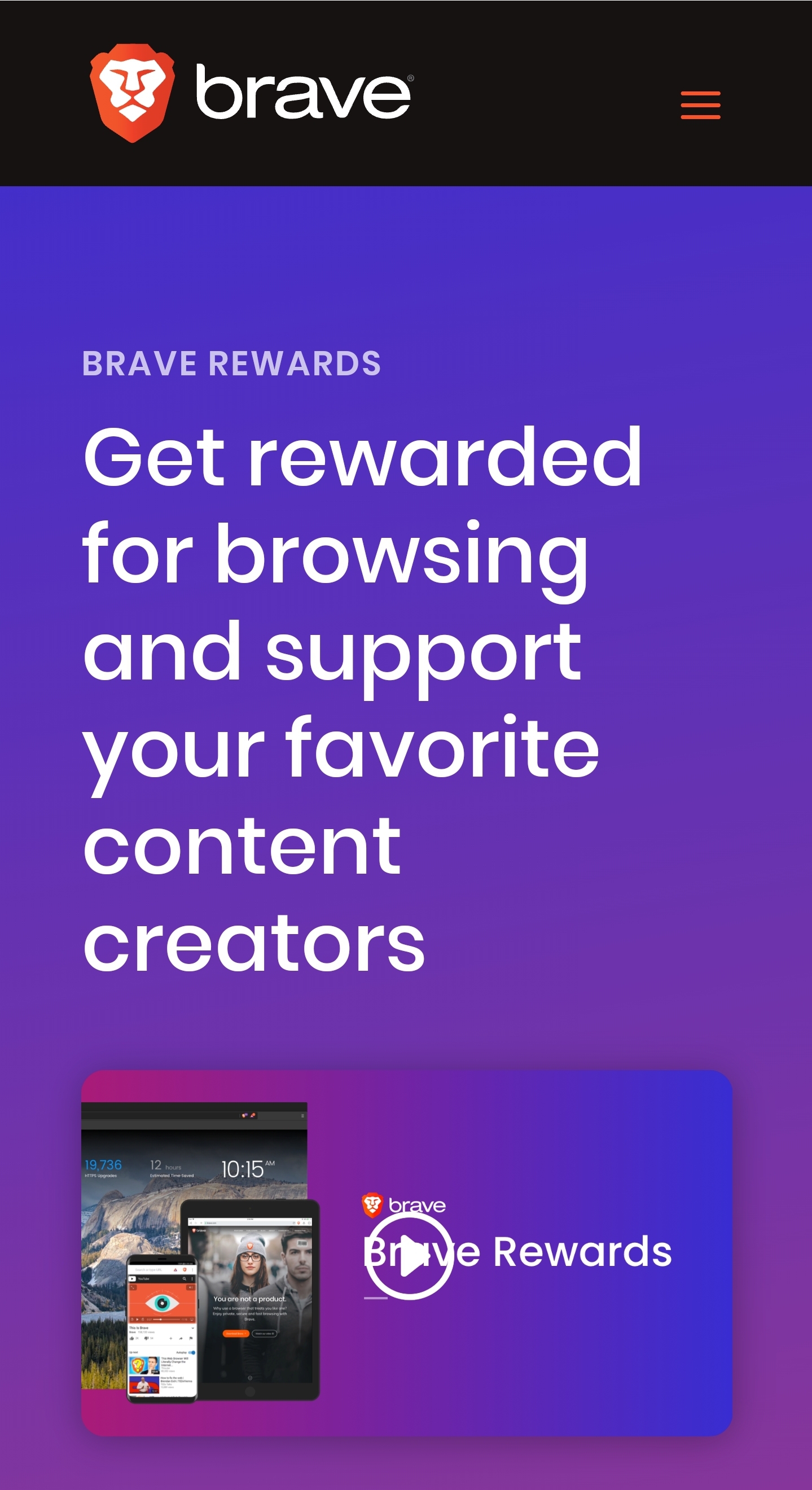 Brave operates a web browser that eliminates those pesky ads. It safe, it doesn't share you information and it pays you to use it!