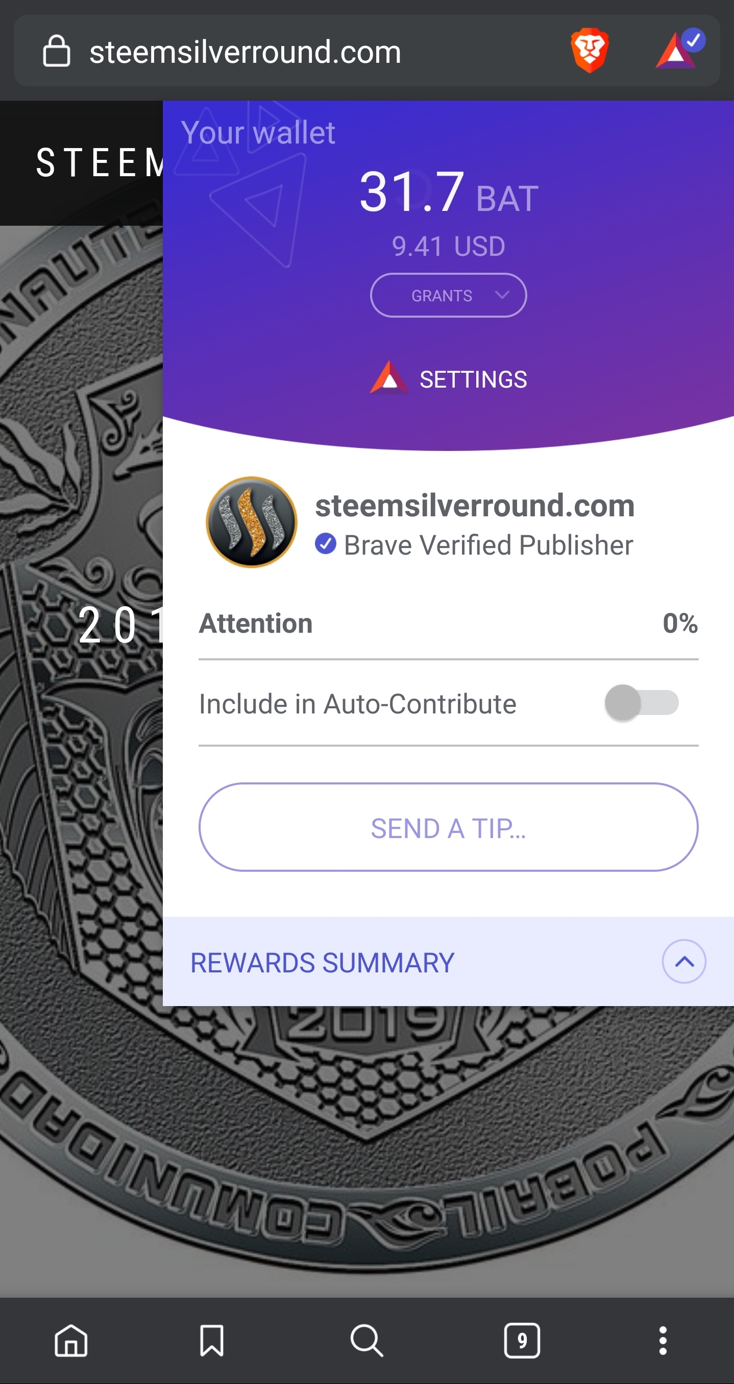 So why would you want to send A BAT tip to the steem silver round website?