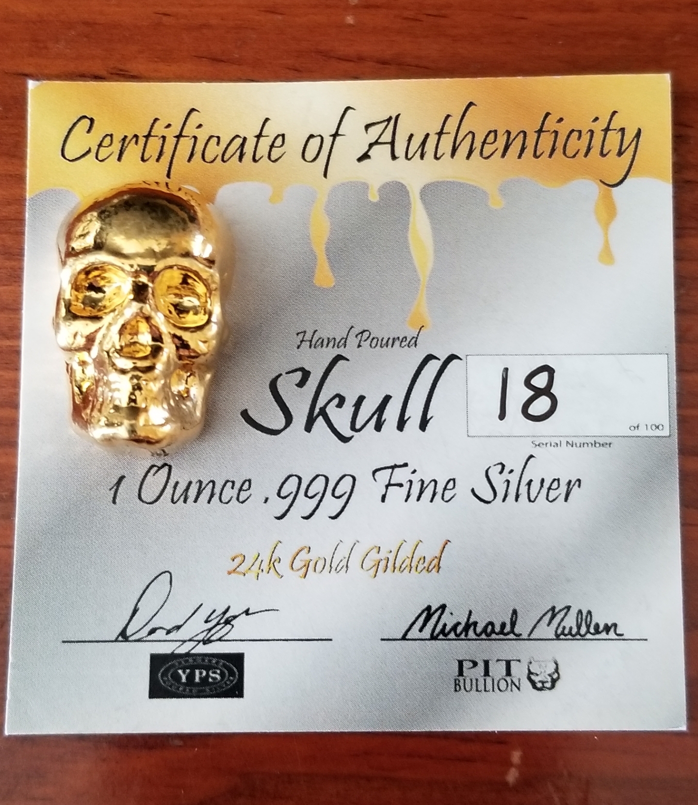 I mean, 1st its a YPS 1 oz skull which is a pretty cool piece to start with. Then you add the expertise of Pit Bullion with a 24k gold gild.