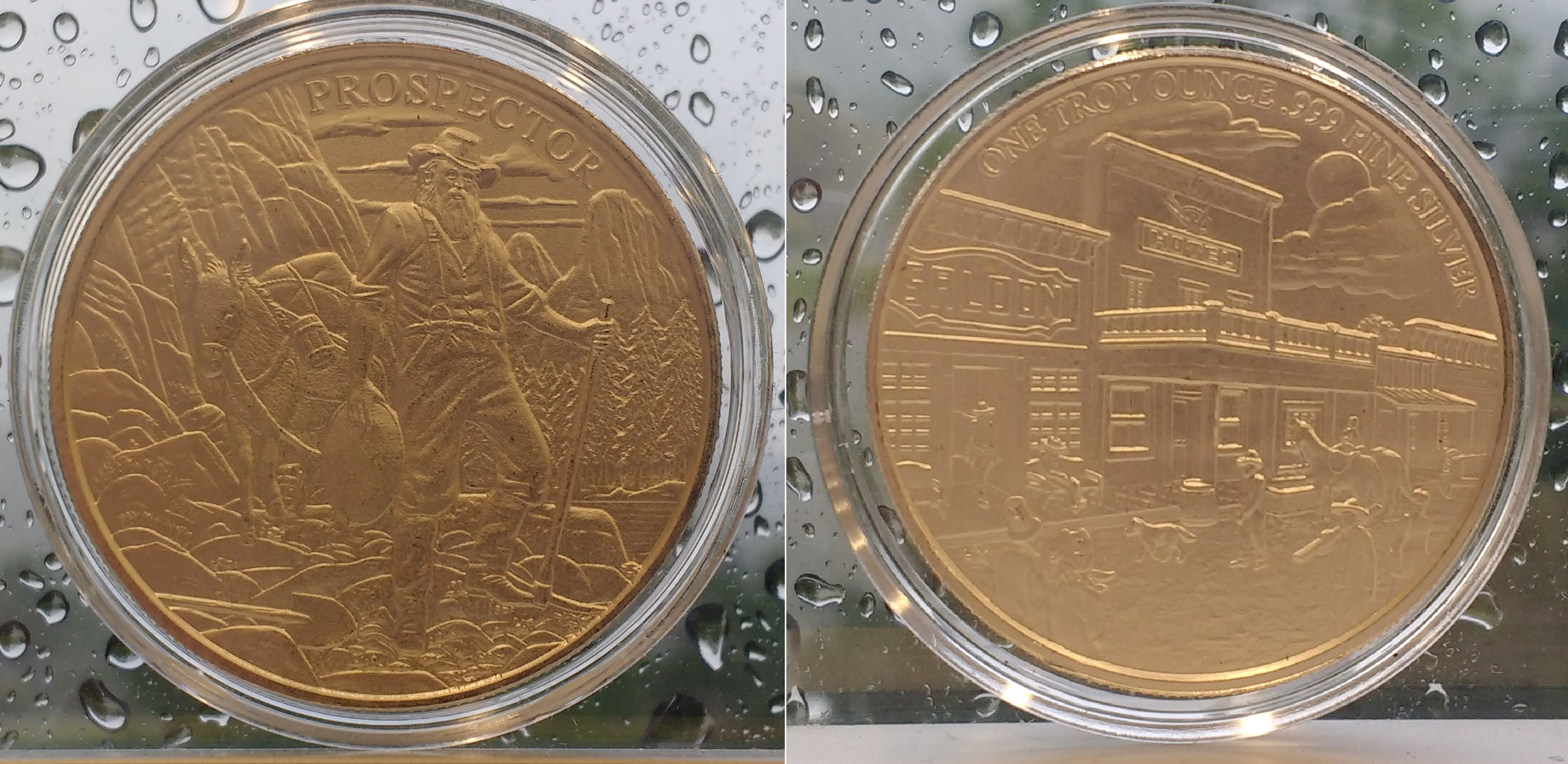 To celebrate joining the SSG community I wanted to give away some silver! Here are some awful pics, but it was the best I could do, got stuck at work for a few extra hours and had to snap one before it got too dark. Pictures of the actual round, with a case. I am giving away 1 (one) Prospector round.