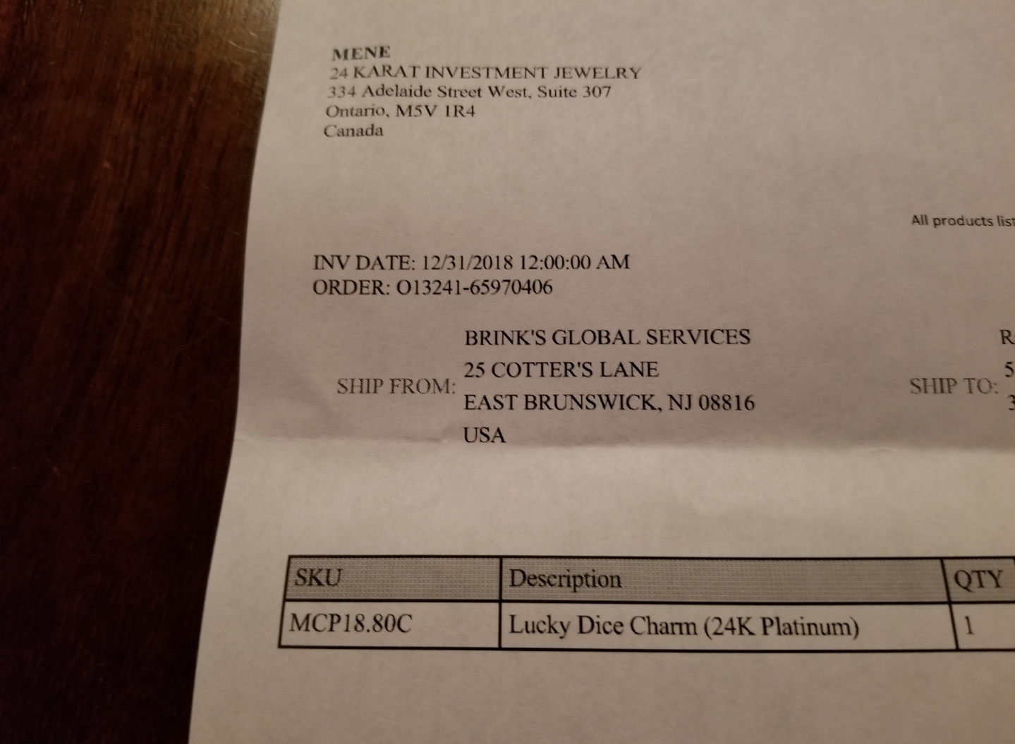 So mene is pretty awesome, not a lot of Jewelry for guys that is affordable but diffently some nice stuff. For me, I jumped into a Platinum order. Sweet little dice. It's only a little over 2 grams and really I thought it would be a little bigger.