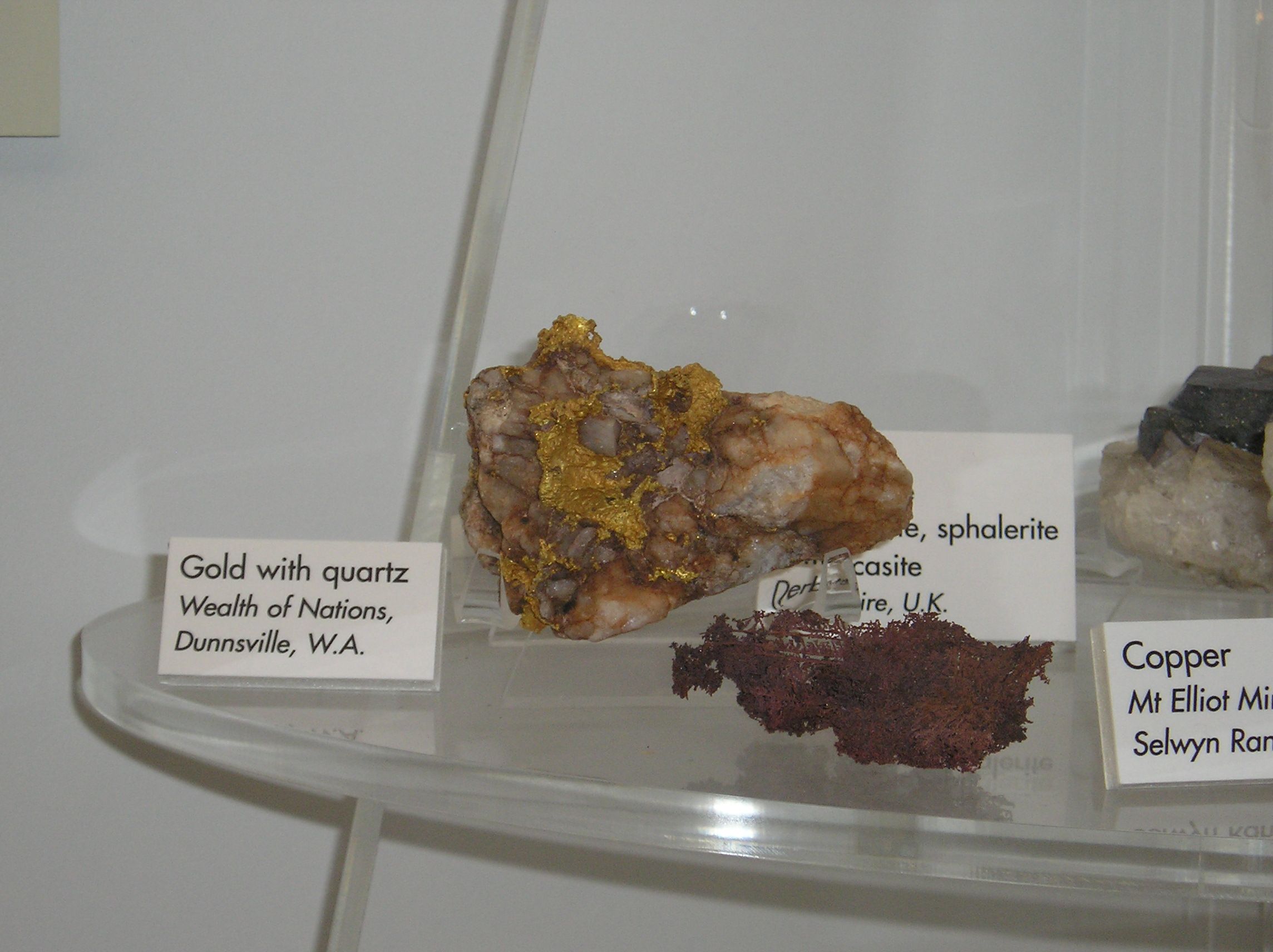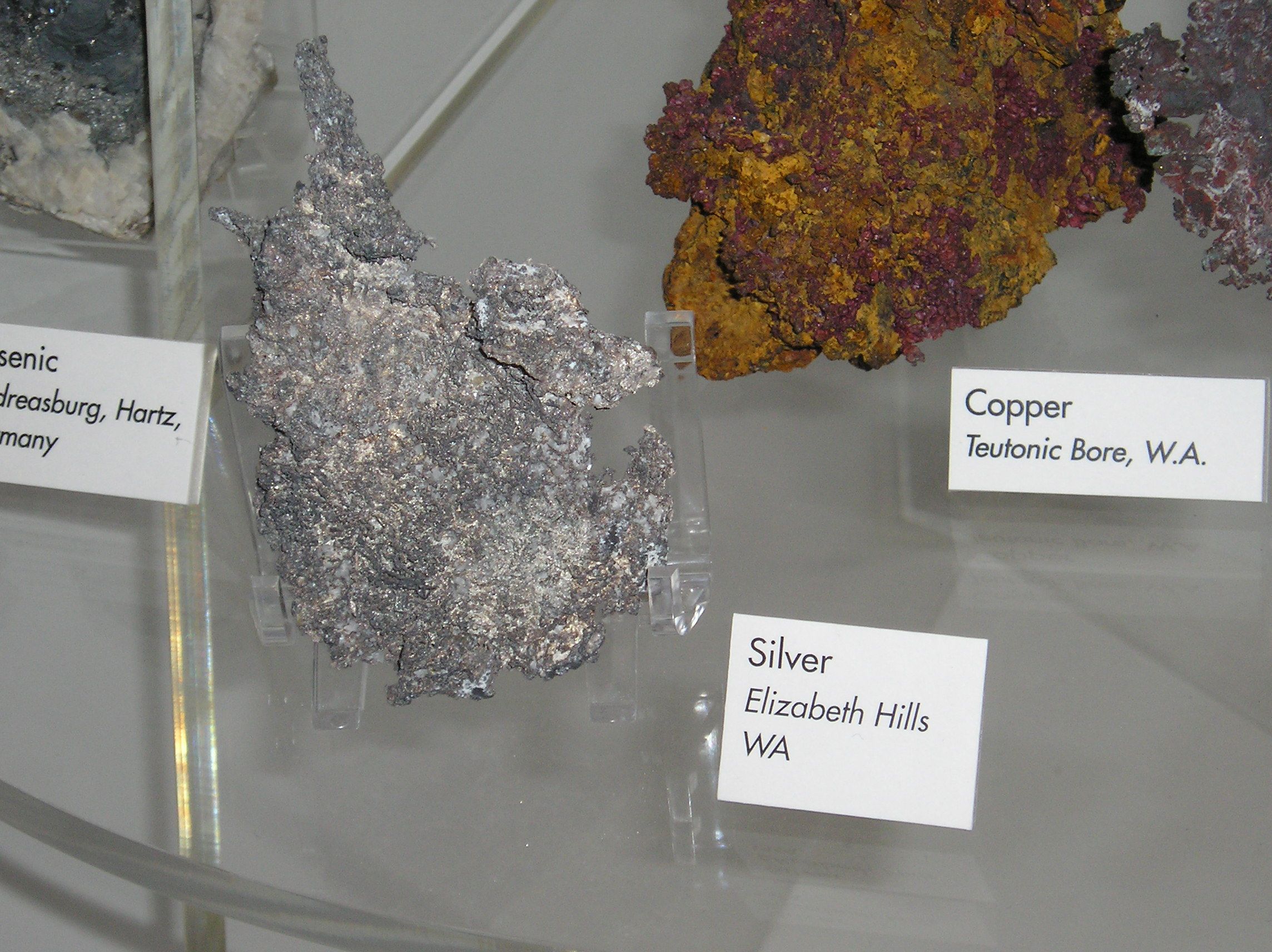 Silver, Gold and copper Nuggets at the Western Australian Perth Museum.