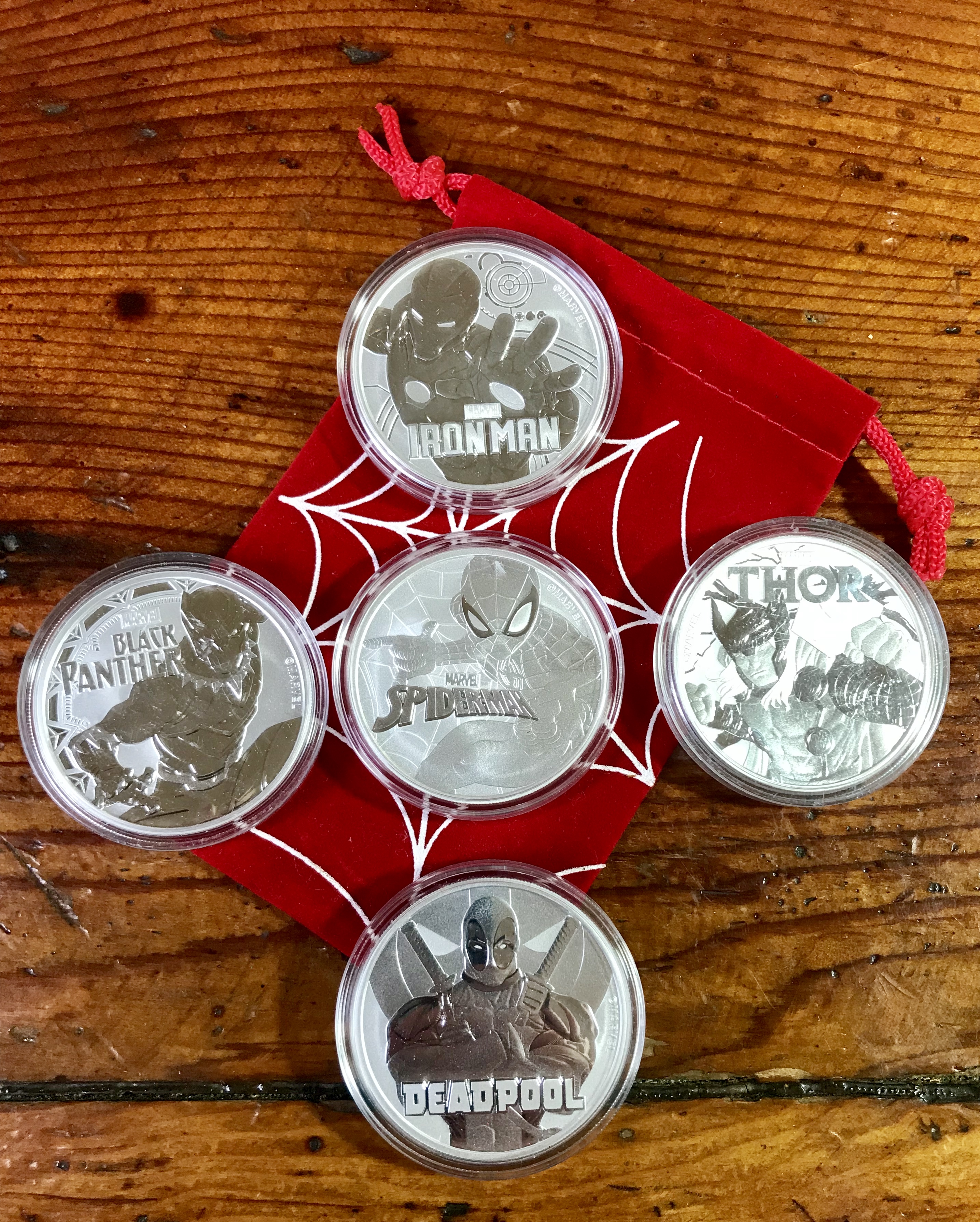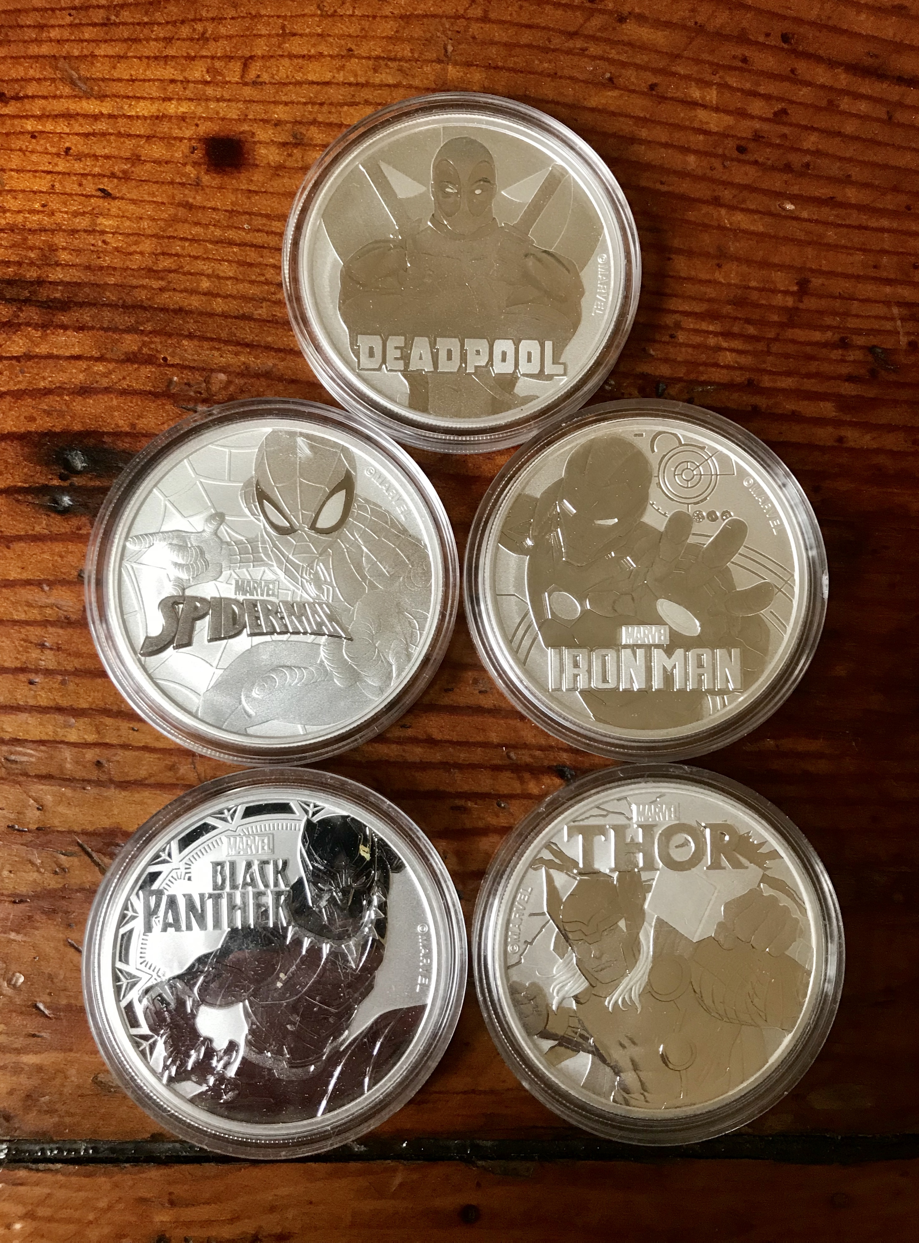 I have a Spiderman coin and I want a Black Panther. This is my first time seeing the Deadpool, which I must get!
