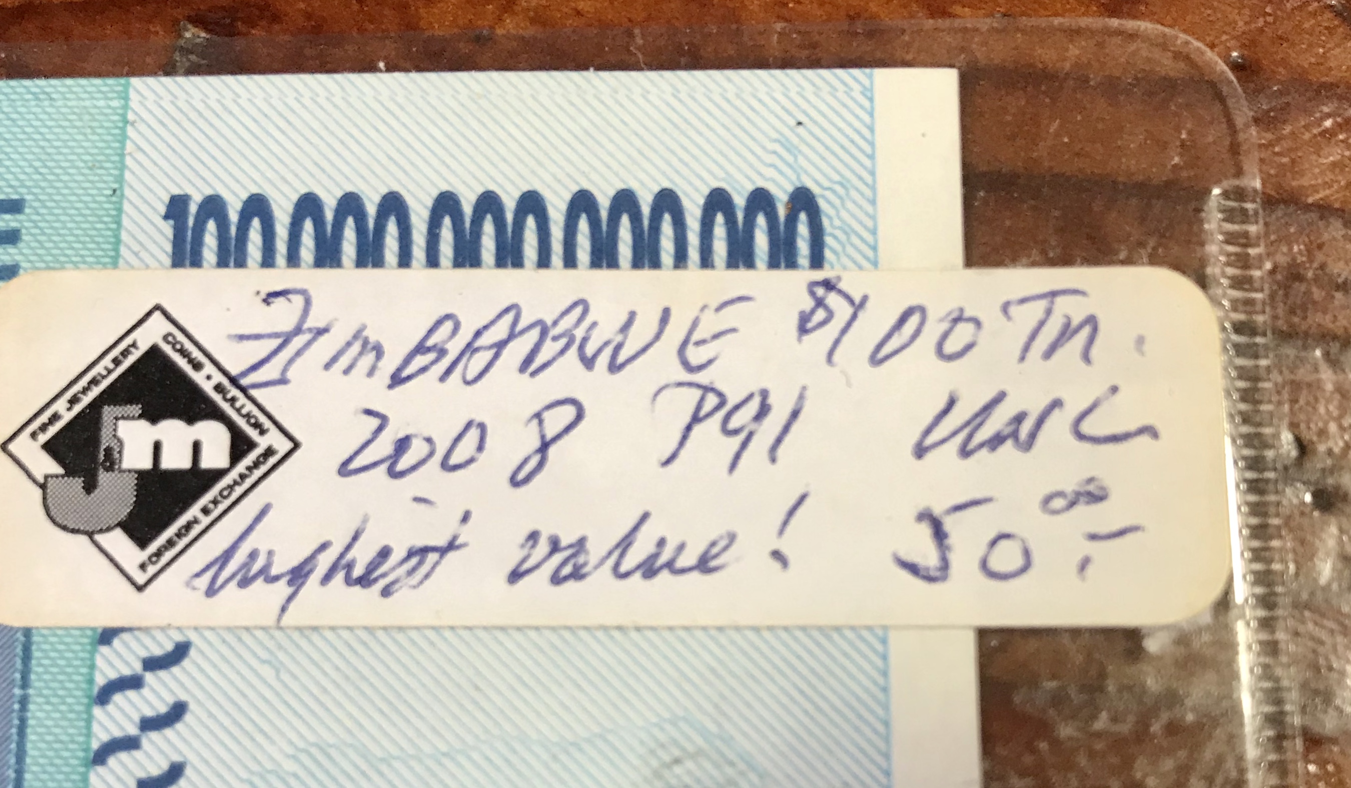 I bought an old $50 million dollar Zimbabwe bill at a coin show about 5 years ago! It’s a great conversation maker!