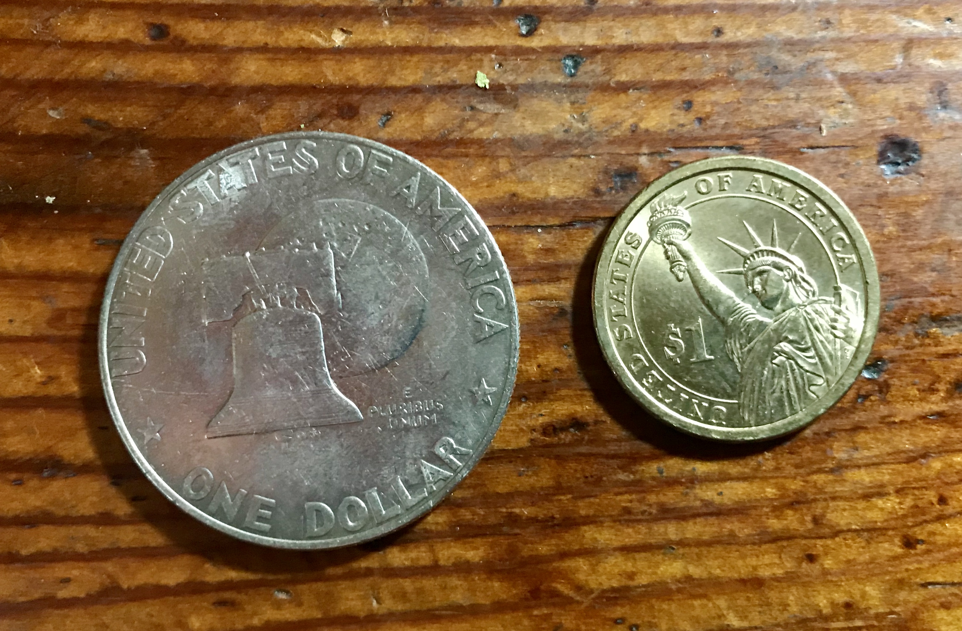 A couple different versions of fiat $1 US coins — i was wondering, do people actually accept the small “gold” coin as buck in the states? Or the other one for that matter?