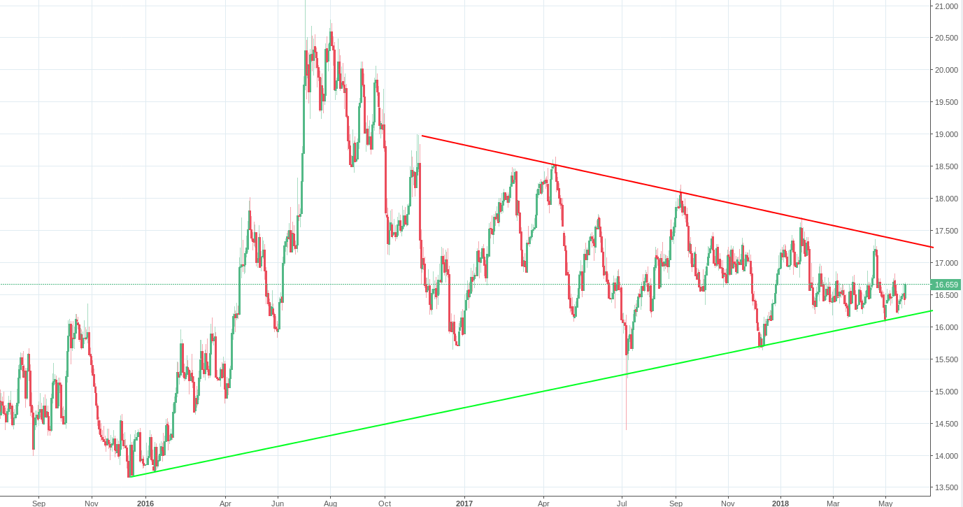 There hasn't been much to write about in the metals. The consolidation continues. It seems everything is quiet on the geopolitical front, but things seem to be warming up again. In the meantime the metals got the bounce that I was looking for, albeit a week or so later, and are back in the consolidation zone rolling forward to the inevitable break out that will almost certainly arrive before Q4 this year.