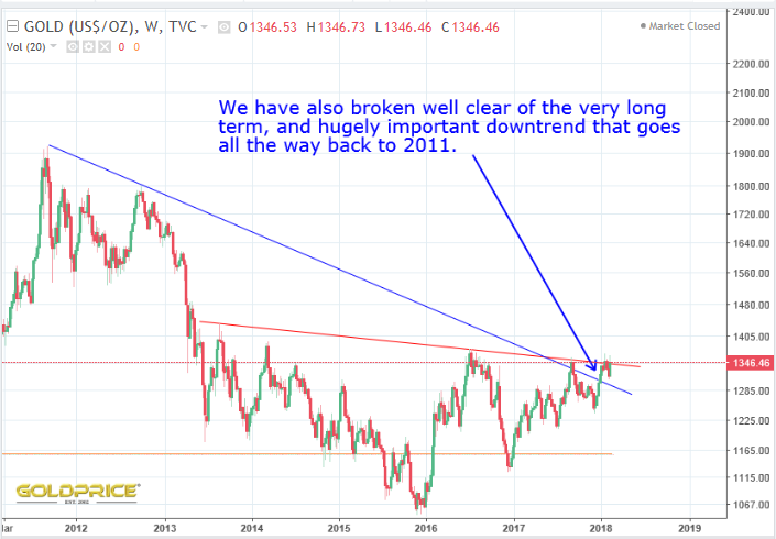 Much clearer though, is the (very bullish) fact that we are now through the long term resistance from the 2011 top.