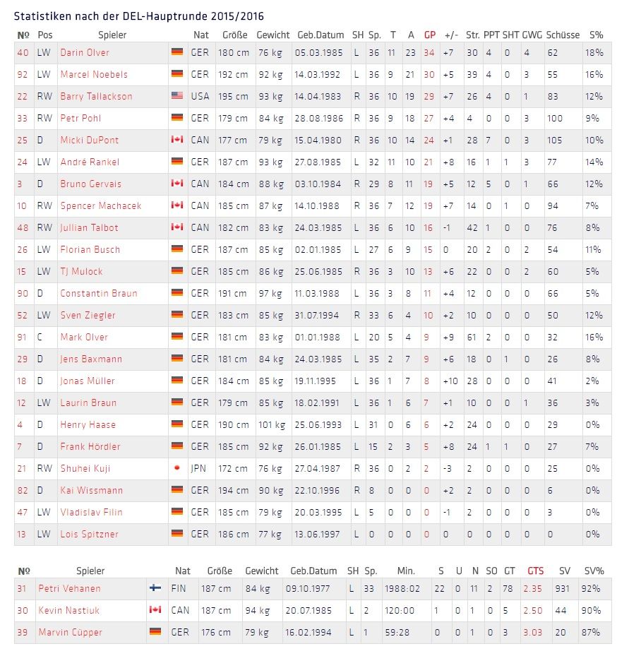 Iserlohn Roosters Stats/[German] ERC Ingolstadt Statistiken:
