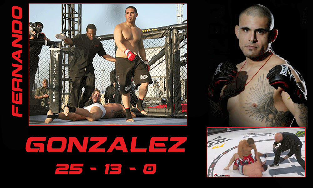 Fernando Gonzales is the 33-year-old 'Menifee Maniac' fighting out of Team Quest in Northern California. Fernando has been fighting the sport of mixed martial arts since early 2003, and can be considered a true veteran. He has become a staple for the 'Bellator' fight organization, fighting for them consistently since early 2014. Fernando has been pawned by the organization in the past to make streaking contenders look good, but he has derailed many parties.