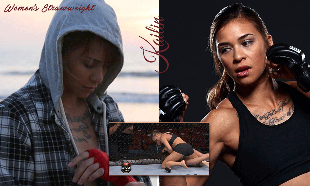Kailin Curran is the Ewa Beach, Hawaii-born kickboxer fighting out of Reign mma...this camp is home to head coaches and UFC veterans Krzysztof Soszynski and Mark Munoz. Curran brings an arsenal of hard punches and kicks at a variety of ranges...but she is more than willing to stand and bang inside the pocket. Against the tough vet Emily Kagan, Kailin was able to show brutal power in her uppercuts and counter right hooks. Her ability to scramble and keep good top pressure on a hurt opponent showed she has evolved from her first few disappointing performances.