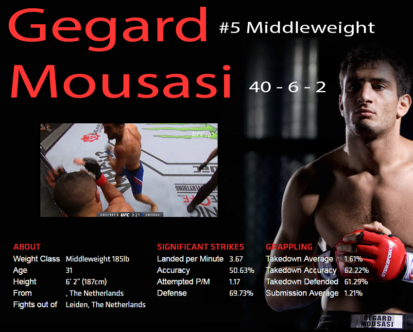 Gegard 'The Dreamcatcher' Mousasi is a former 'Pride FC', 'Strikeforce' and current 'UFC' fighter. With over 48 fights and 40 wins to his name, he is the epitome of a veteran. Mousasi garnered most of his fans with his silent assassin persona; he is at peace in all his fights....more relaxed in the cage than any fighter we've ever seen.