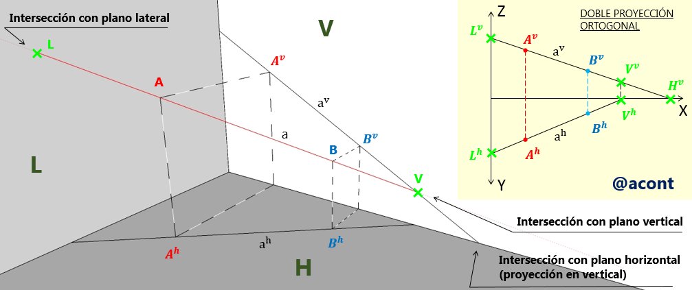 En la siguiente publicación abordaremos algunas propiedades de las rectas representadas en doble proyección ortogonal.