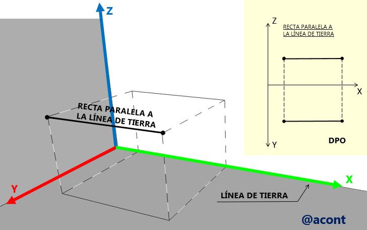 Esta recta es paralela al eje X (línea de tierra) por lo que en la DPO ambas proyecciones también lo serán (Figura N°6). Es un caso particular de las rectas frontal y horizontal.