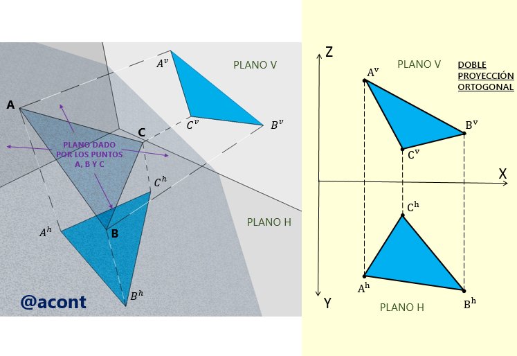Saludos y bienvenidos estimados lectores de este blog. Ya abordado el tema de las rectas, entraremos en el estudio de un lugar geométrico indispensable para lograr la representación de objetos en el espacio: el plano. En la Doble Proyección Ortogonal (DPO), la representación de un objeto tridimensional puede requerir conformar superficies planas para determinar la forma de estos y sus proyecciones en horizontal y en vertical. El programa SketchUp nos permite generar vistas tridimensionales de la situación y construir objetos en el espacio de una manera muy sencilla, constituyendo así un recurso computacional de gran ayuda. Durante mis estudios de Ingeniería Civil, utilicé este software en diversas ocasiones, no solo para entender mejor los temas de Geometría Descriptiva, sino para cualquier problema que requiera la representación tridimensional de un objeto.
