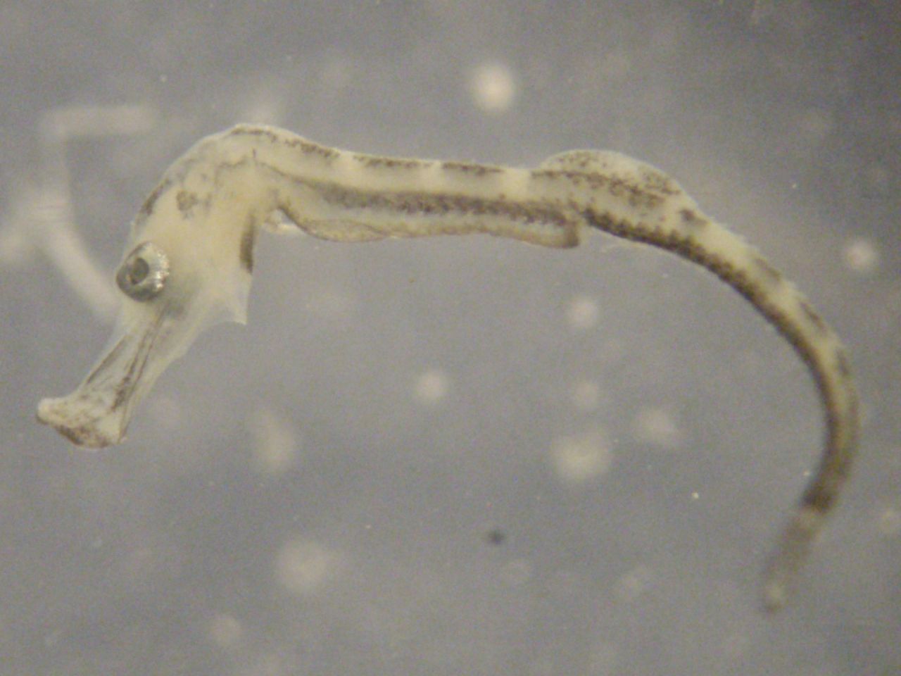 Figura 2. Ejemplar de Syngnathus elucens (Sygnathidae) de muy corta edad;(6,20mm de longitud estándar-LE).
