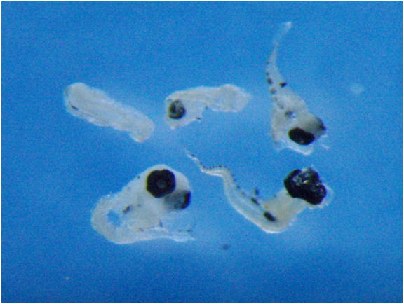 Figura 8. Fotografía de prolarvas de peces con poco tiempo de eclosión.