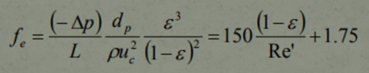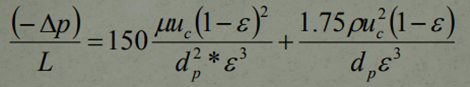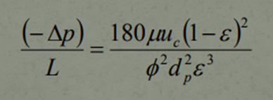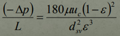 It is important to note that this equation contains pressure gradients for both Laminar as well as Turbulent Flow. Under Laminar fluid flow, the first term will dominate and it can be noted that this term is almost identical to The Carman-Kozeny Equation, except for the fact that the constant value employed here is 150 rather than 180. The reason for the change is to account for any Turbulent flow that may be present at the time as well as to account for any changes in particle size due to the mixture of these 2 flows.