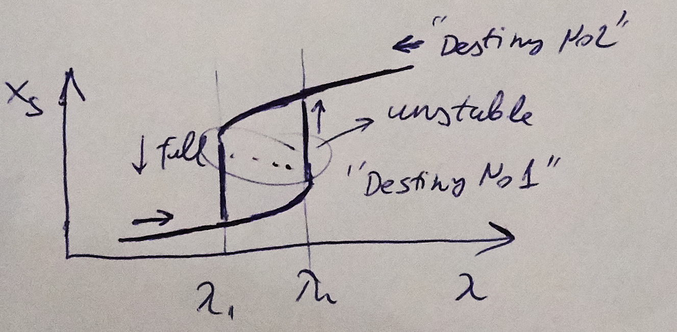 First, you need to invest your time and willingness (A) in some process of learning, so you can have a successful career (P). You go to college (λ1), you graduate (λ2) and you start working. Now you want some change, but you can't simply jump from one point to another. Or maybe there is a new balance between your willingness to change something and the outcome you achieved.