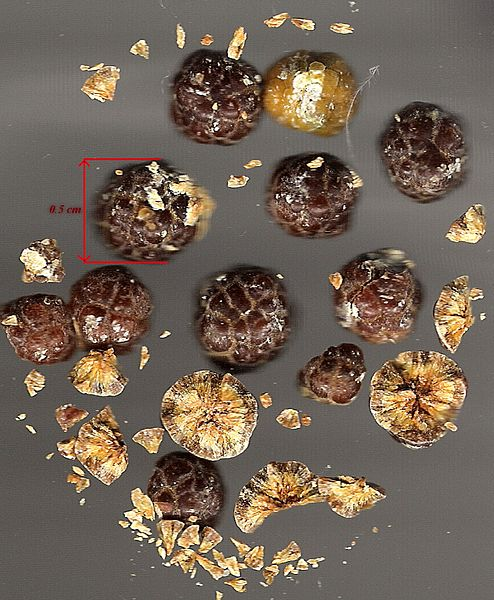 Gallstones from gall bladder. Public domain ional CC BY-SA 4.0. Author: Sacud