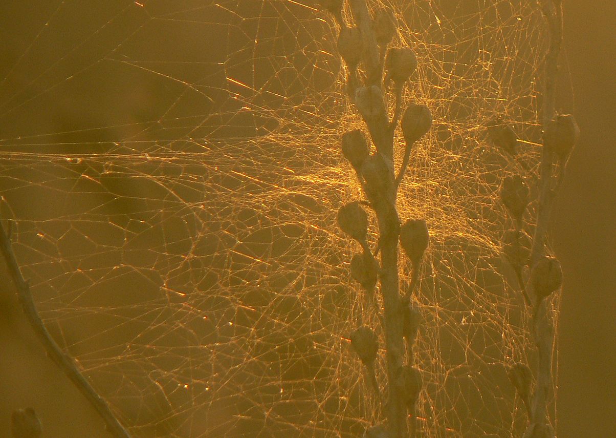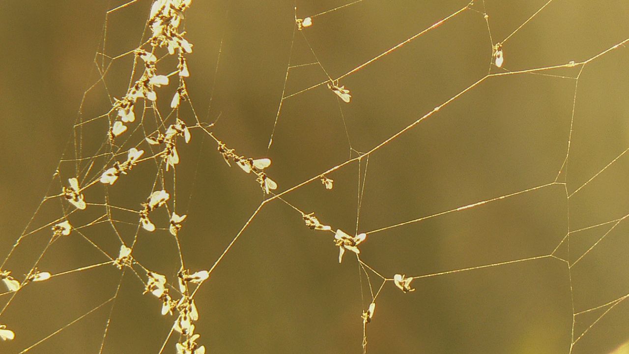 ... a collection of minuscule flies caught in the spider's web ...