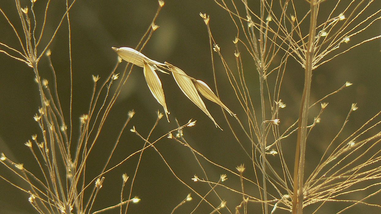... in the balancing act between two stems of grass ...